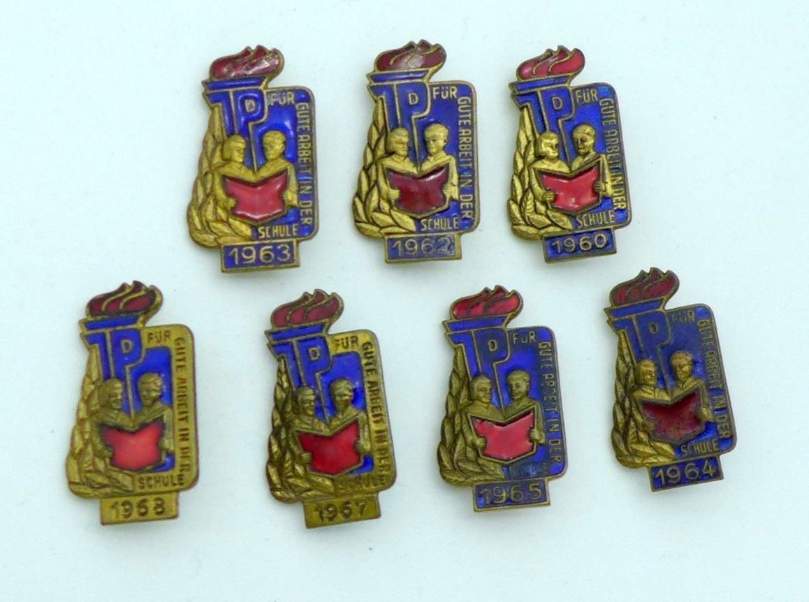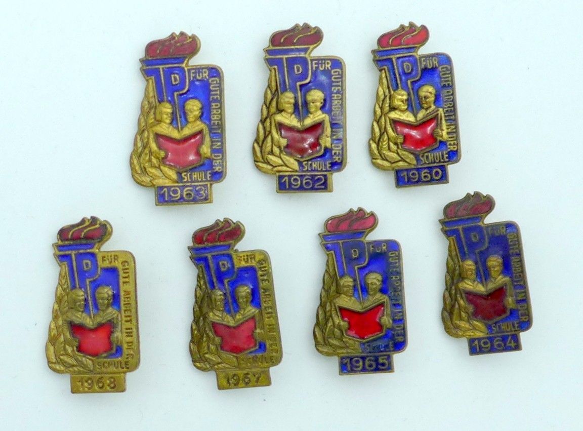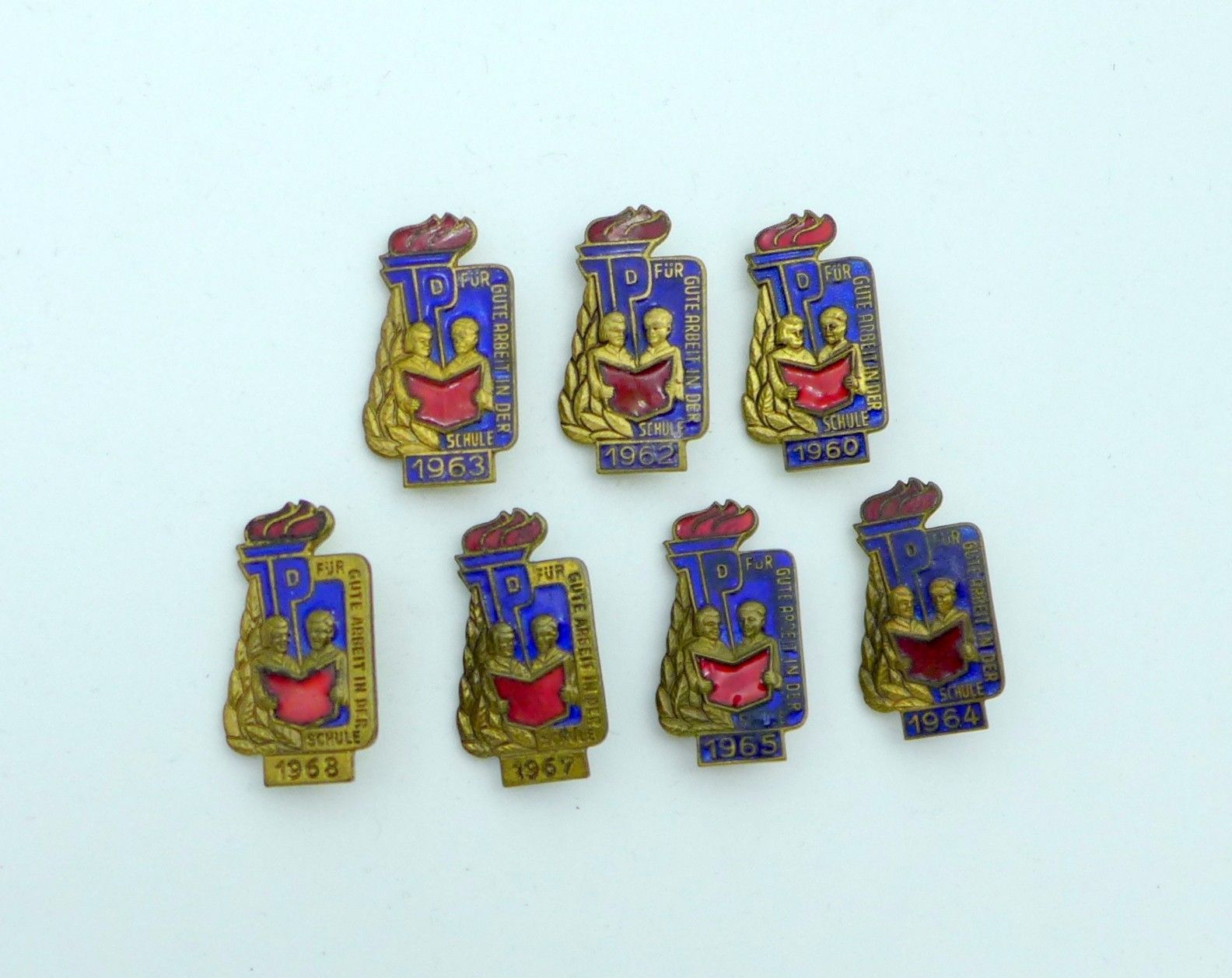 7 DDR JP Abzeichen Für gute Arbeit in der Schule 1960 / 62 / 63 / 64 / 65 / 67 / 1968