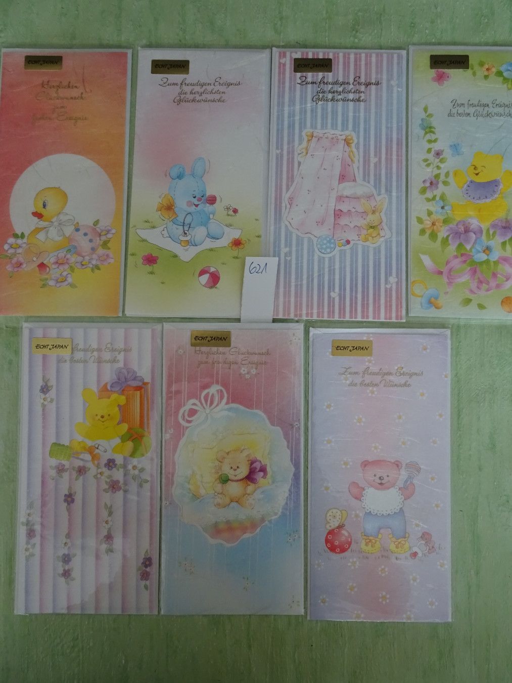 7 Grußkarten Baby freudige Ereignis Geburt Echt Japan transparent Einleger Taunus