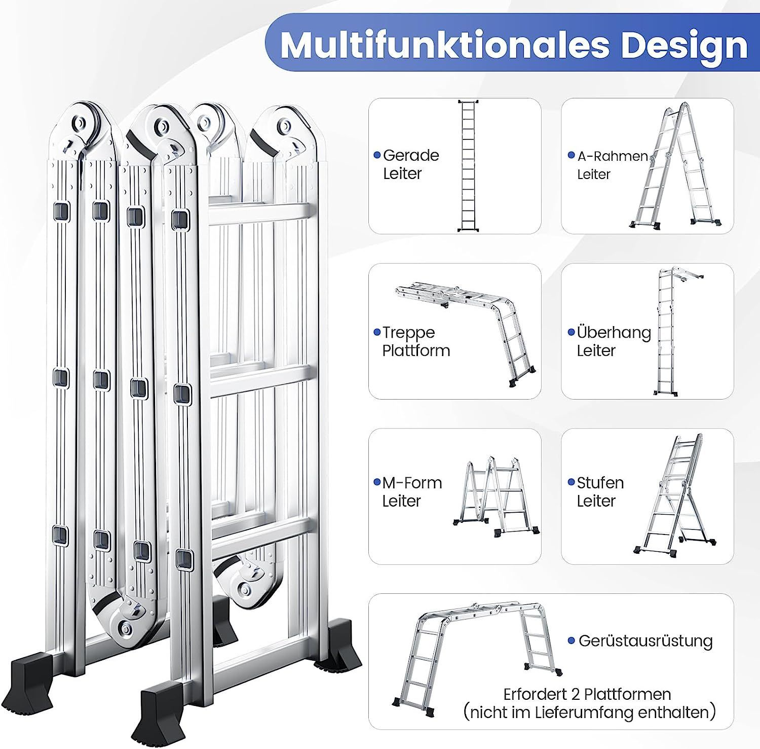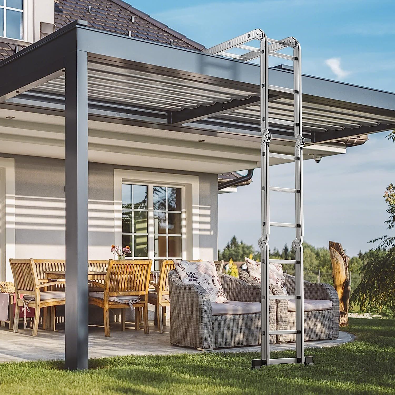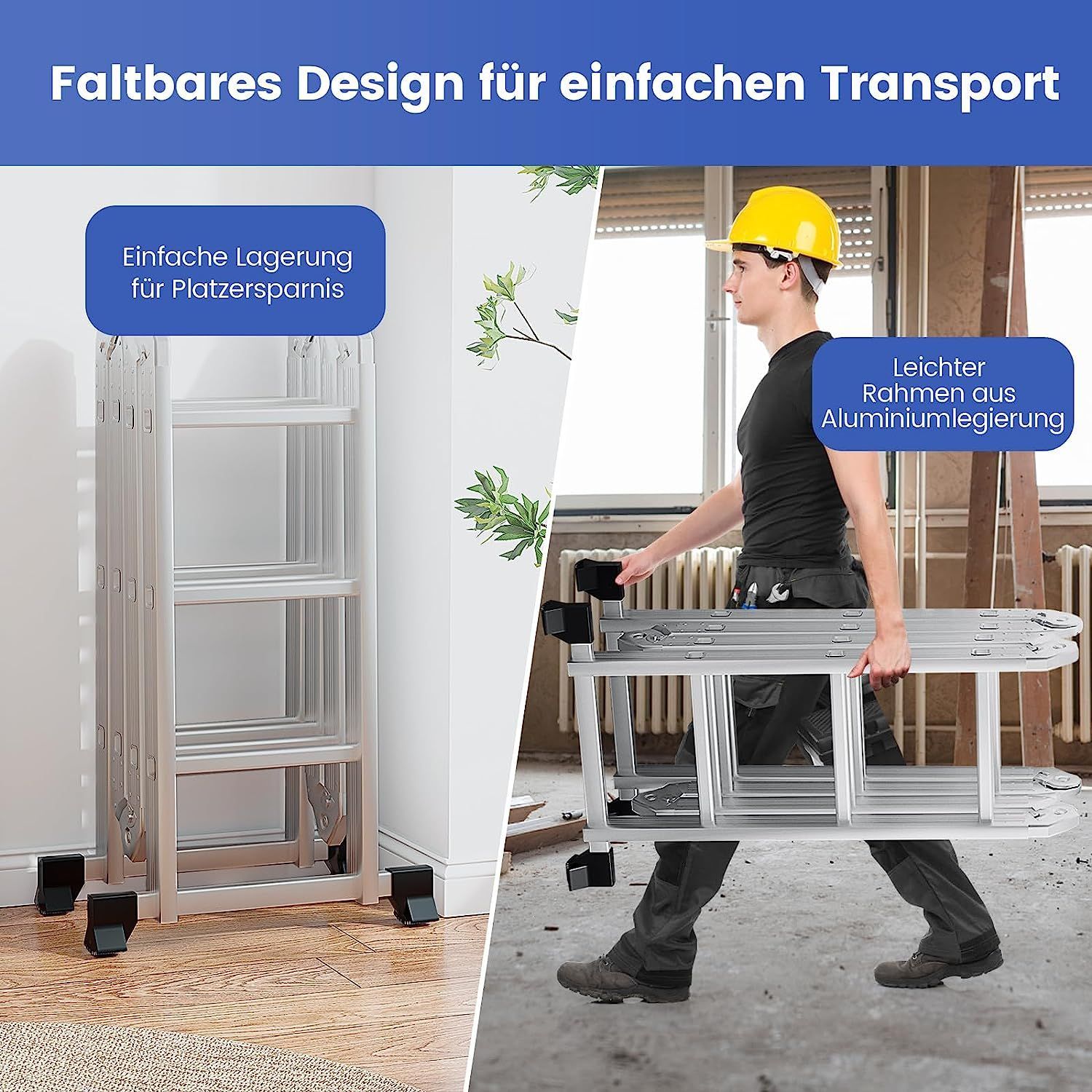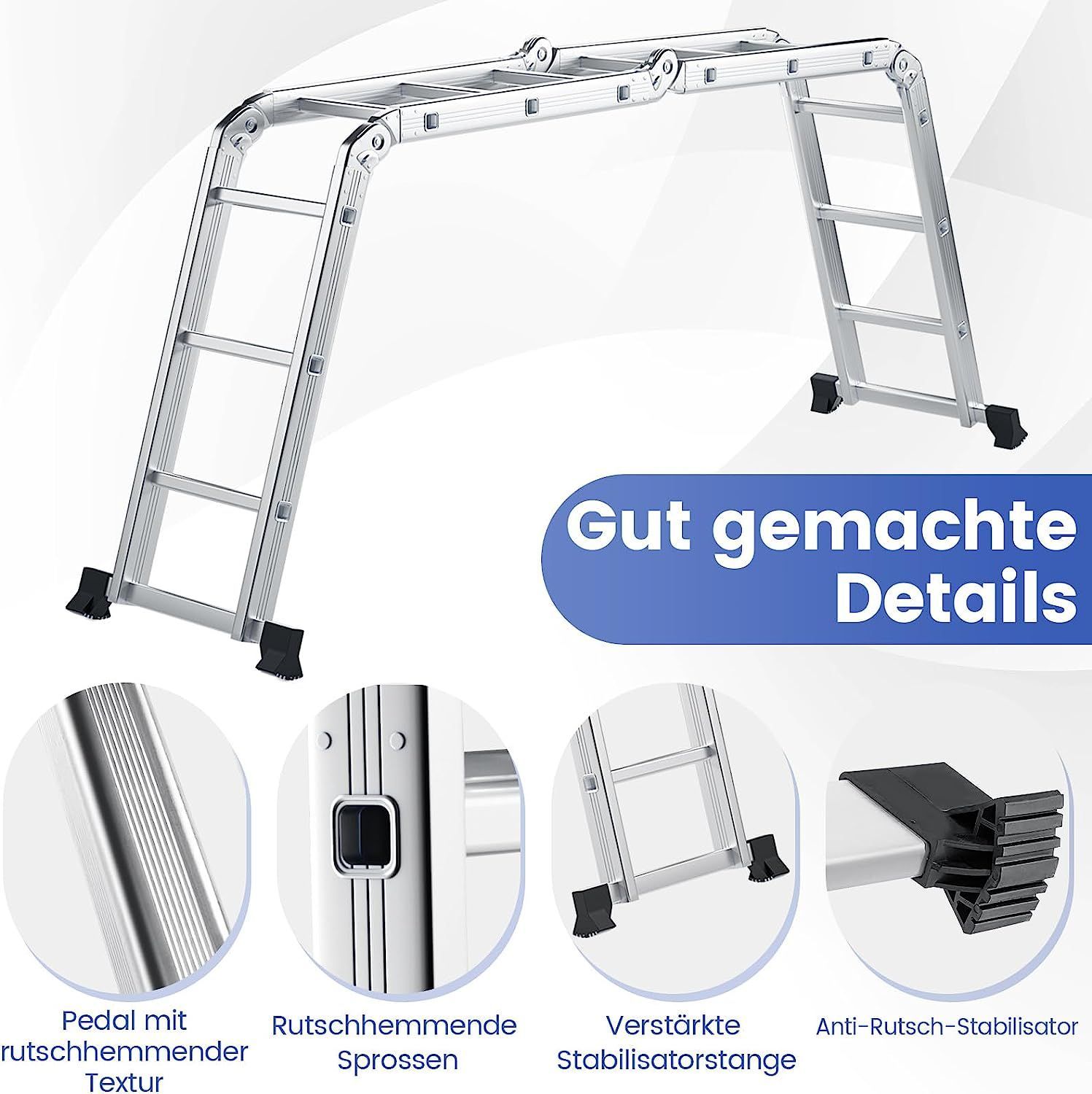 7-in-1 Mehrzweckleiter Aluminium, Klappleiter Länge bis 370,5cm verstellbar