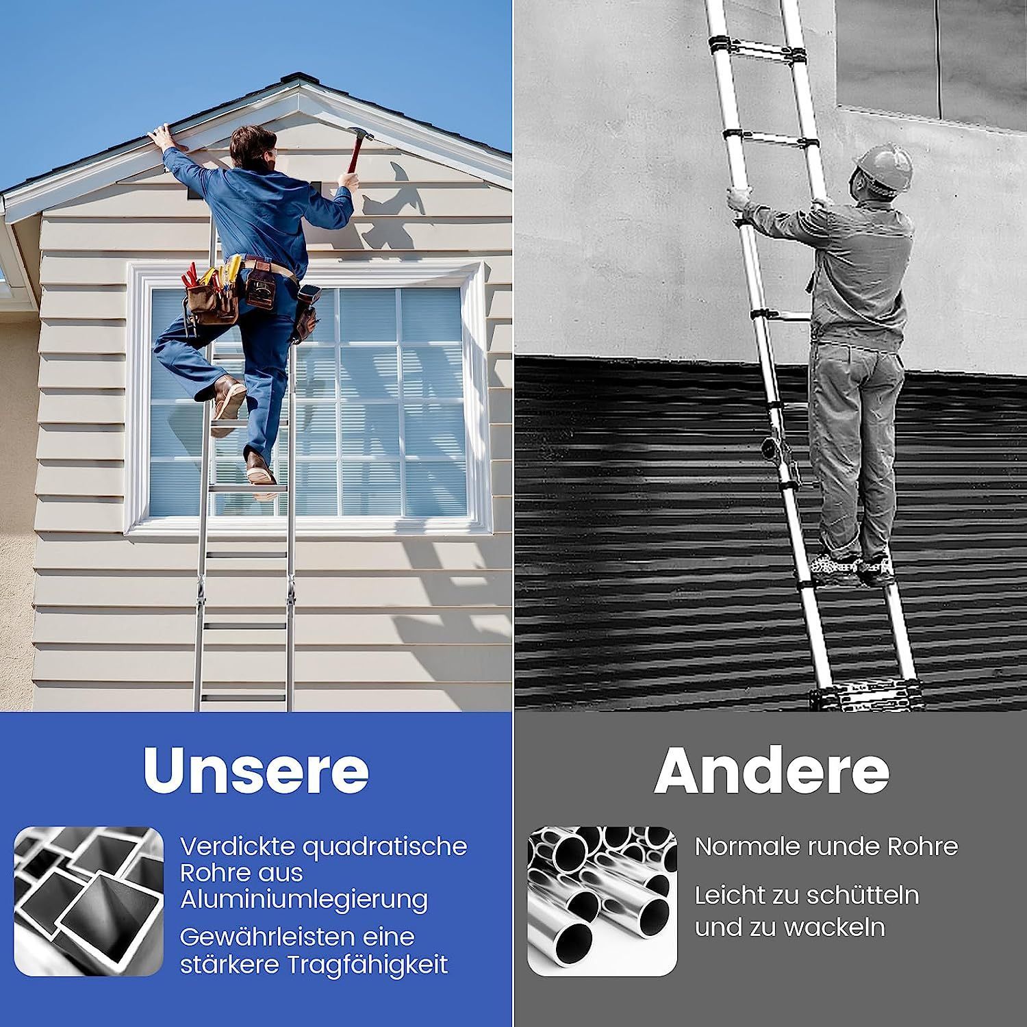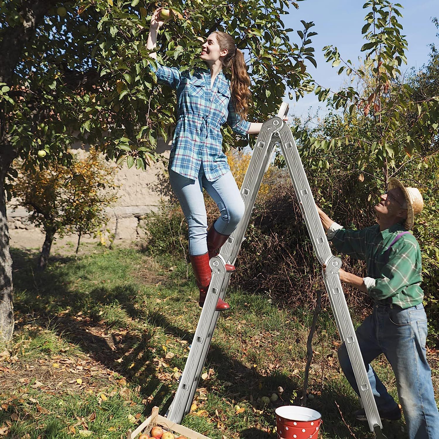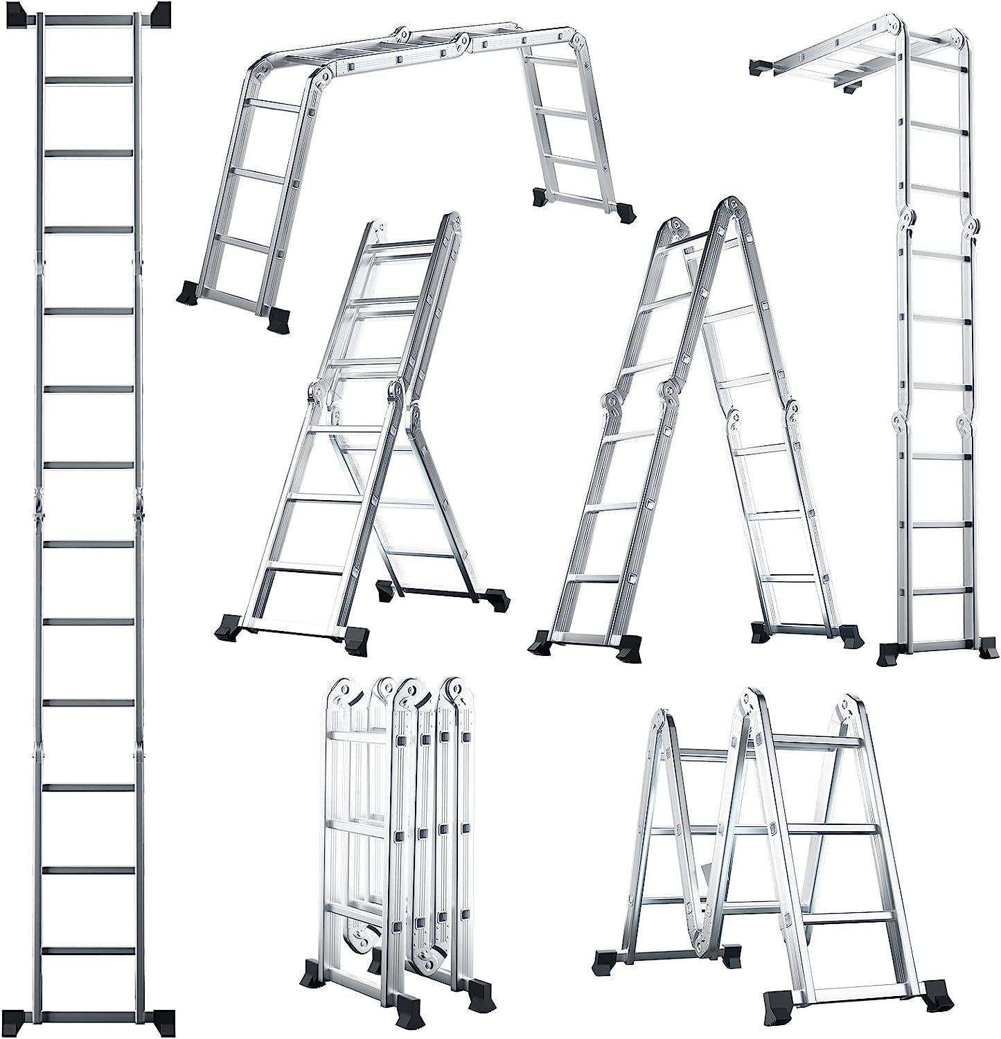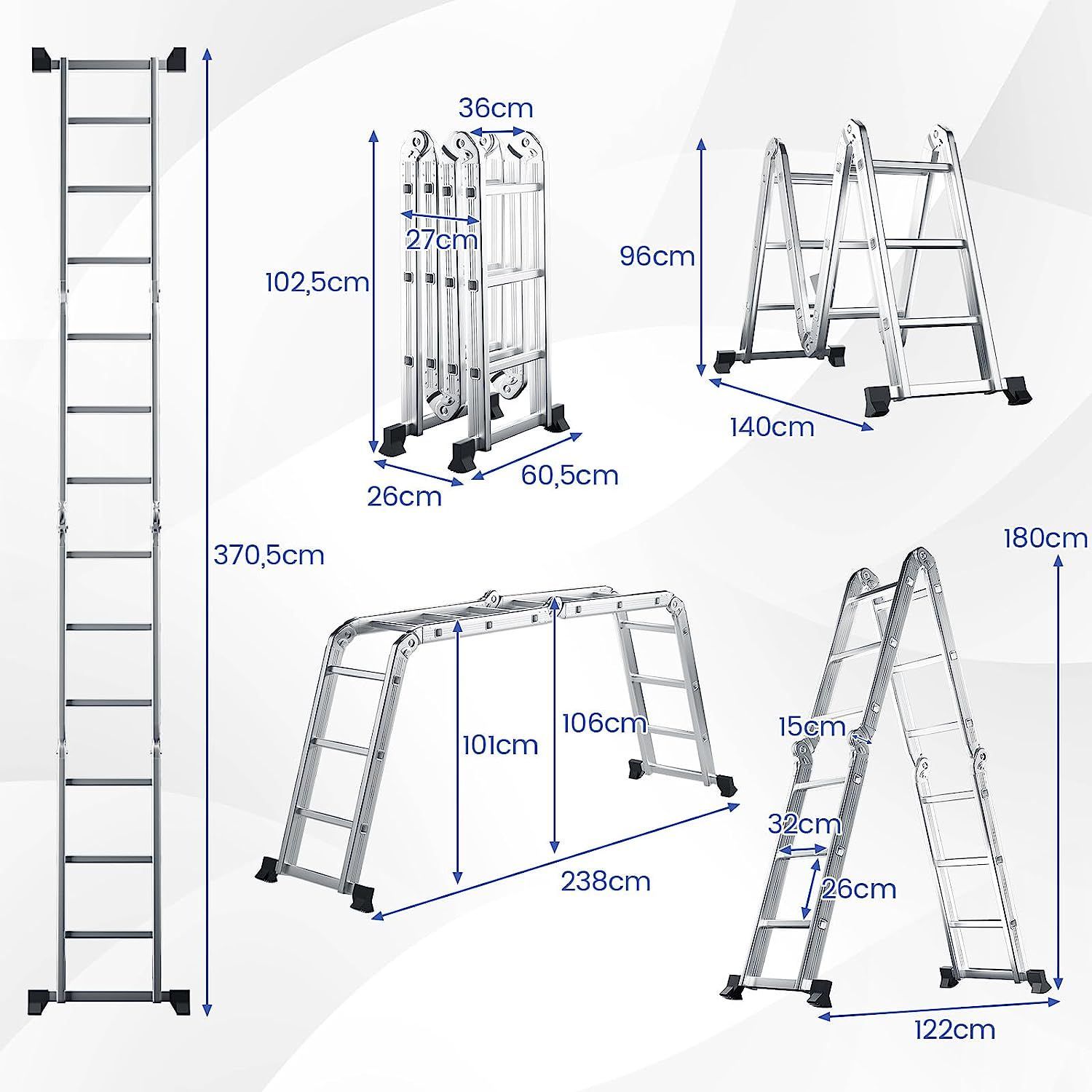 7-in-1 Mehrzweckleiter Aluminium, Klappleiter Länge bis 370,5cm verstellbar