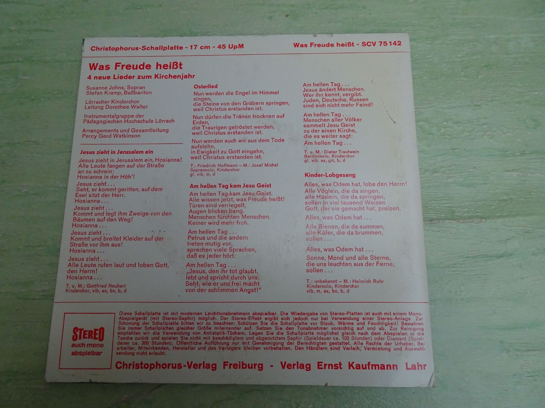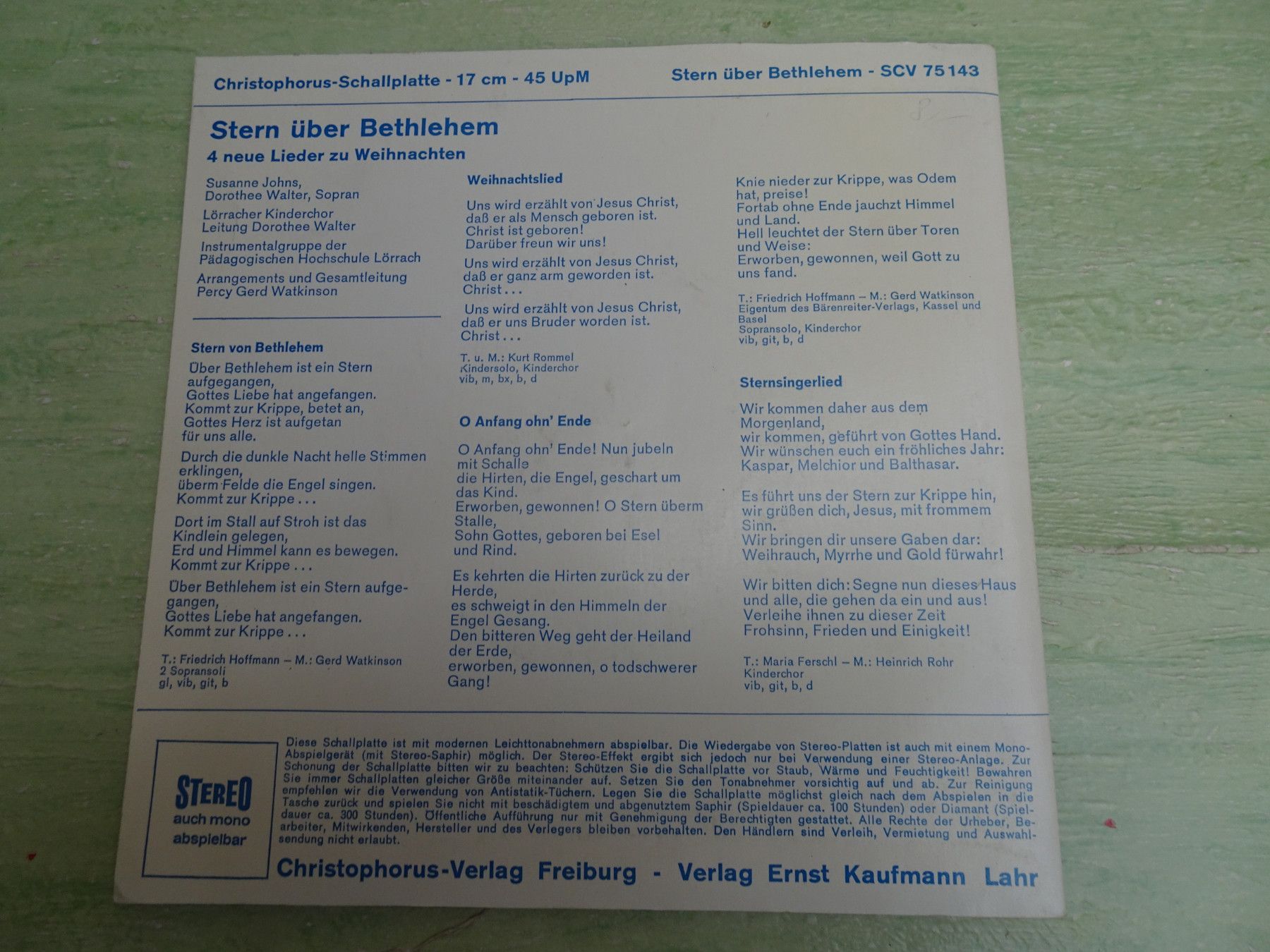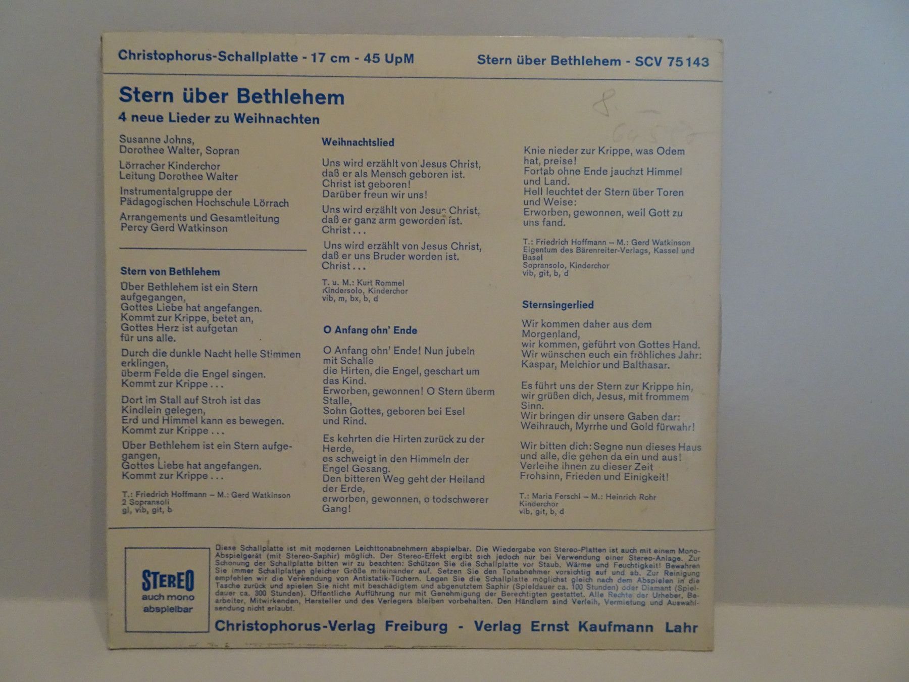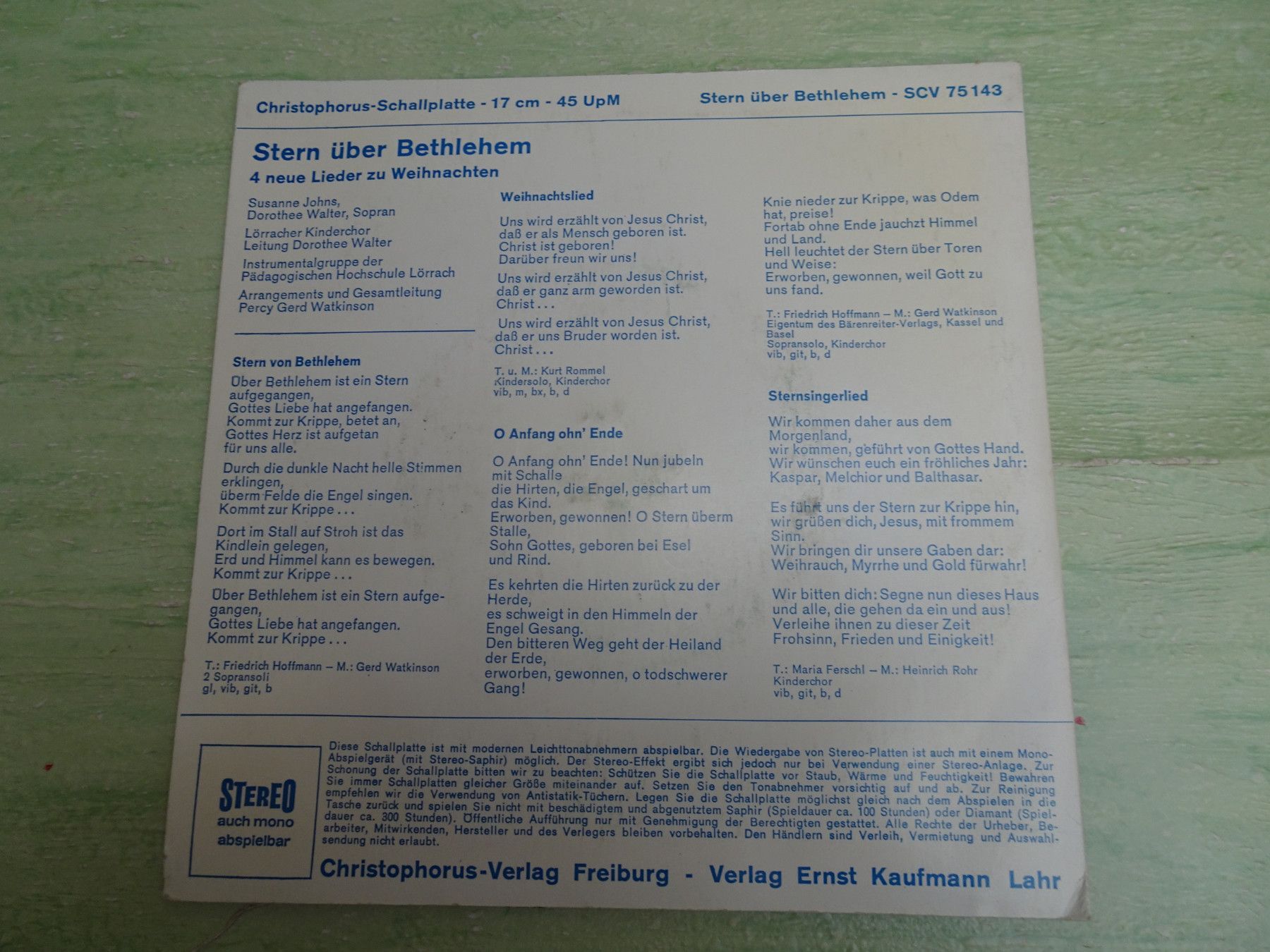 7" Kinderlieder zur Bibel Stern über Bethlehem Was Freude heißt Christophorus