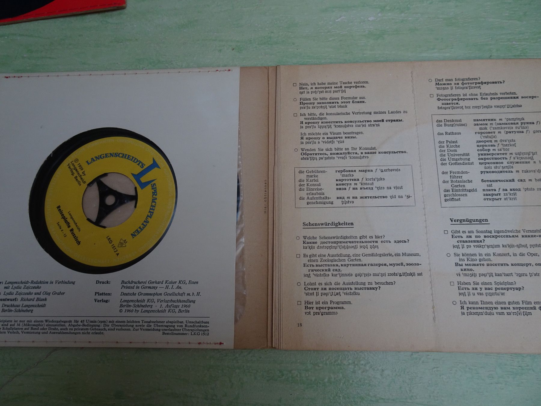 7" Langenscheidts Reiseplatte Englisch Russisch Französisch Redewendungen