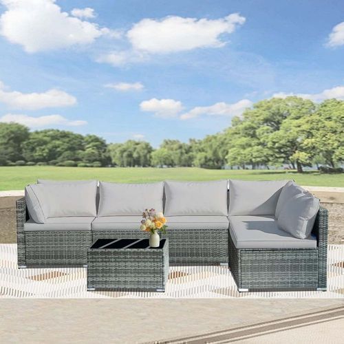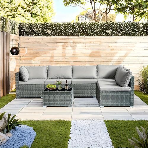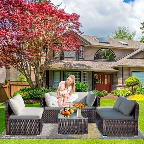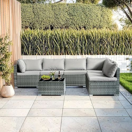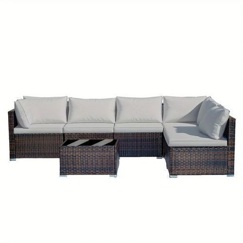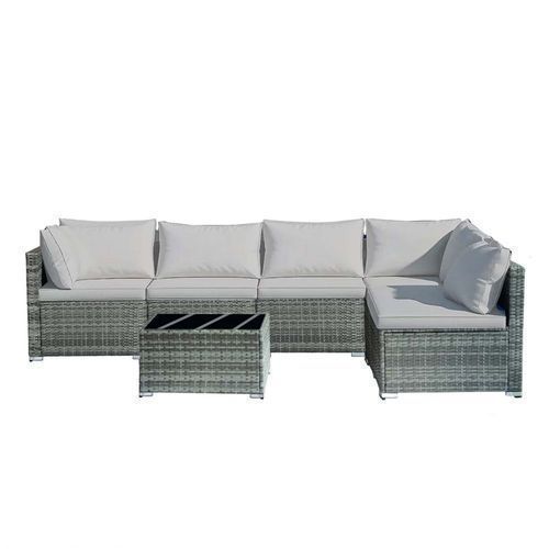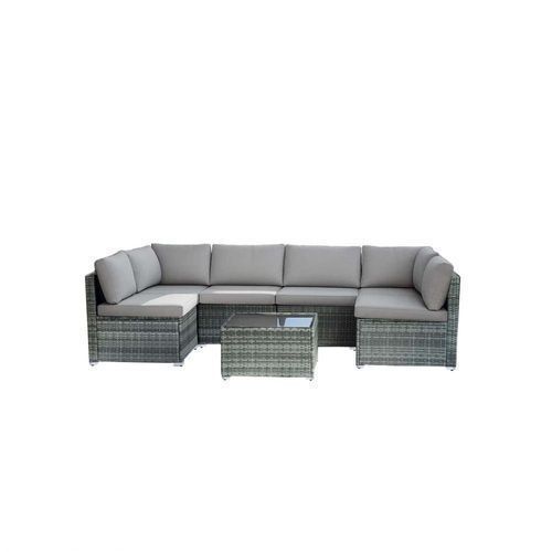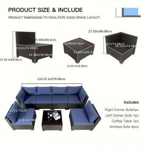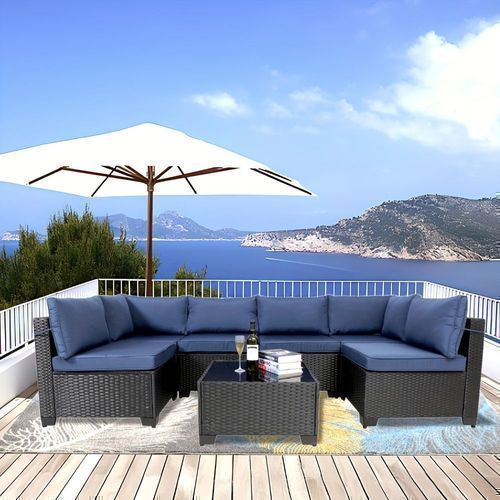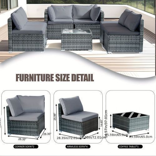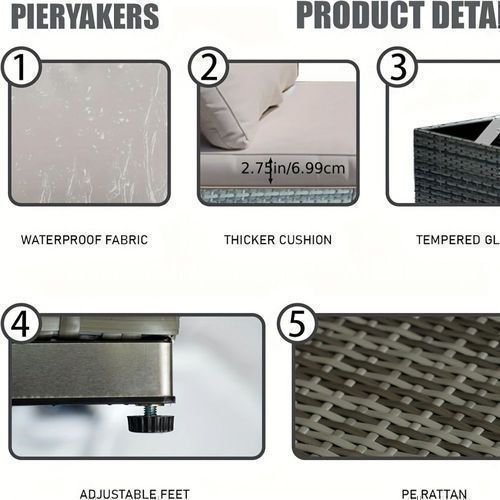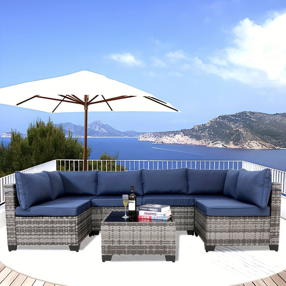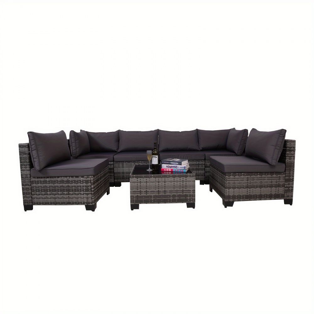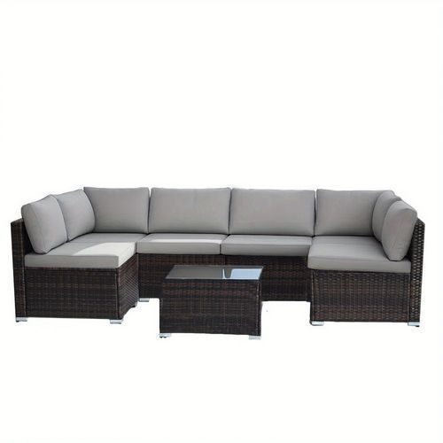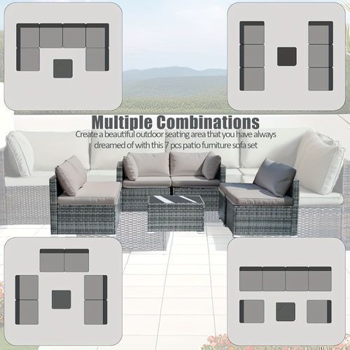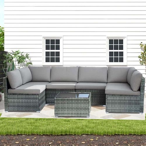 7-piece 7-Piece Rattan Sectional Sofa Patio Set with Washable Cushions and Glass Coffee Table for Garden, Poolside, and Backyard d4bmf5qtnnh000d75bb0 SPECIFICATIONS Color : Grey Embellishment : Other Embellishment Features Frame Type : Iron Item ID : MG275903 Material : Rattan Room Type : Various Ro