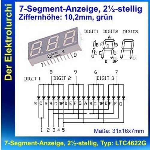 7-Segment-Anzeige, 3-fach, grün 10,2mm, gem. Anode LiteOn LTC-4622G 1St