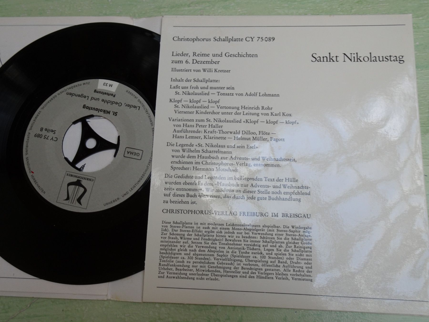 7" Single Christophorus CY75089 St Nikolaustag Willi Kretzer Lieder Reime Geschichte