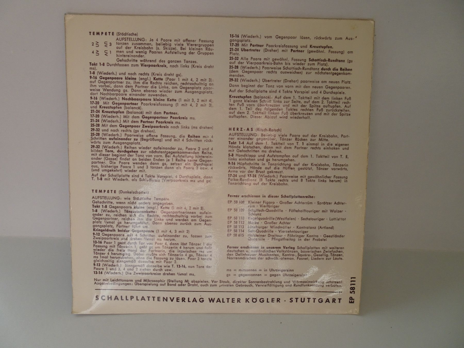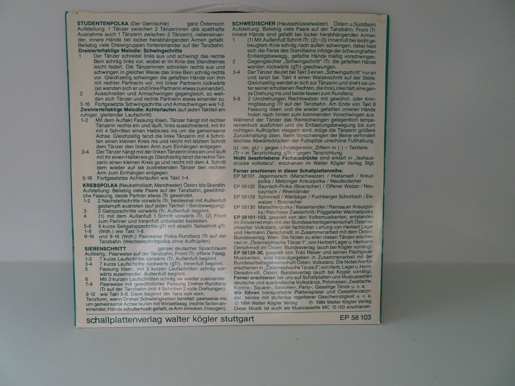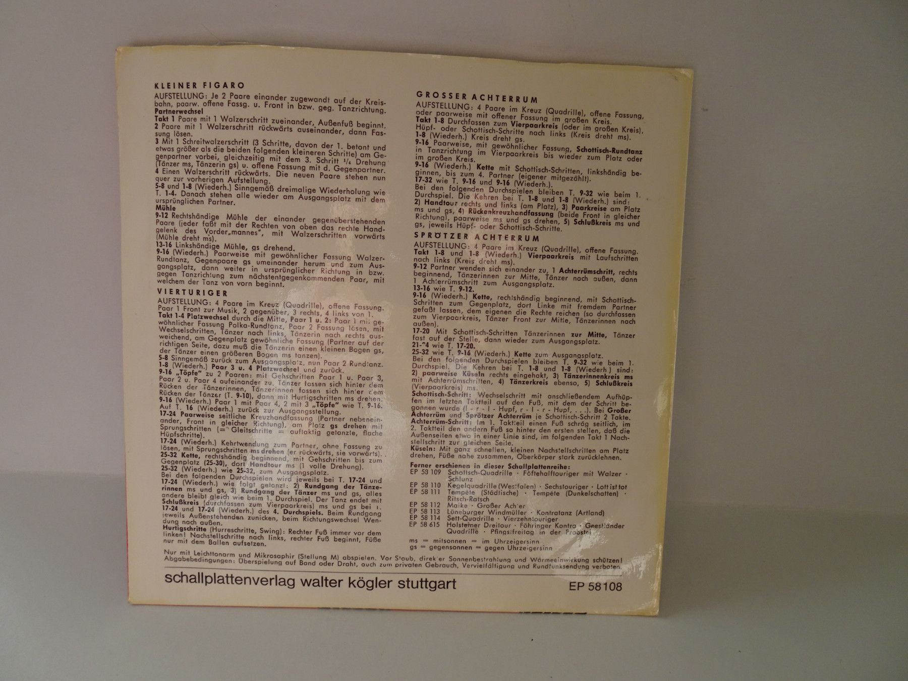 7" Single Kögler tanz Niederländisch Niederdeutsche Östereichische - Auswahl -