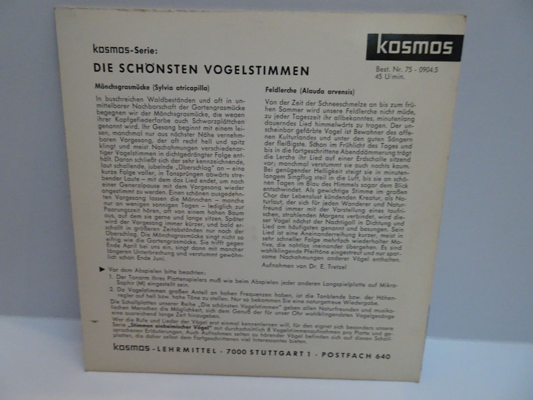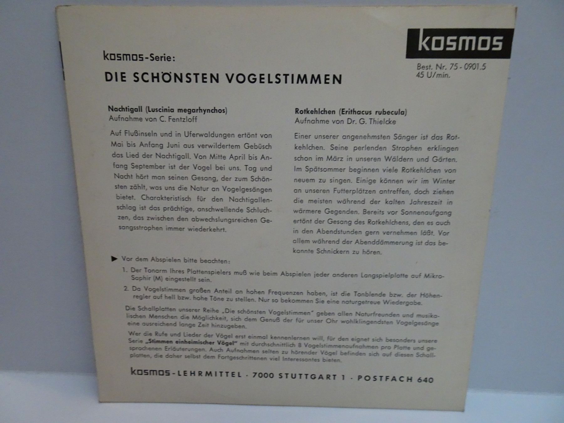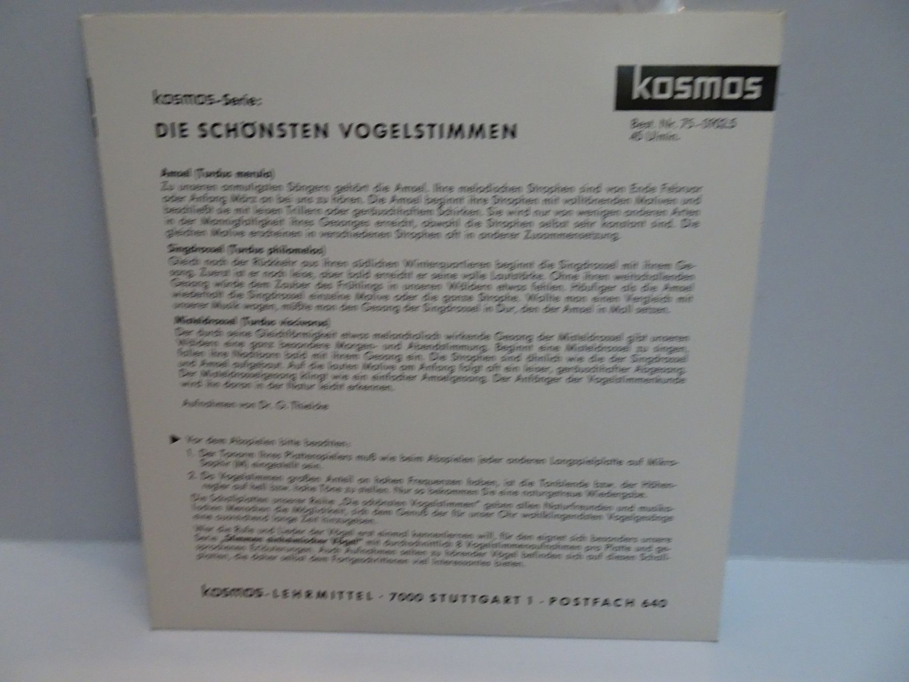 7" Single Kosmos Lehrmittel 75-0 Die schönsten Vogelstimmen