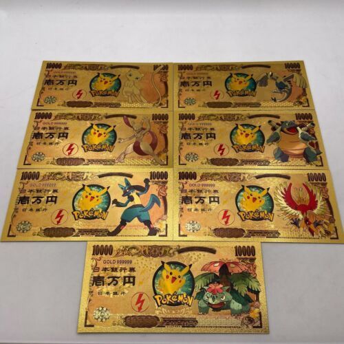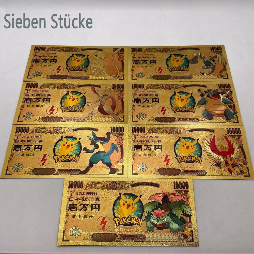 7 Stück Pokemon Gold-Banknoten - Pikachu - Turtok - Sammlergeschenke - Sel(PM1/24/30)