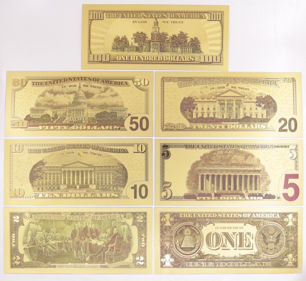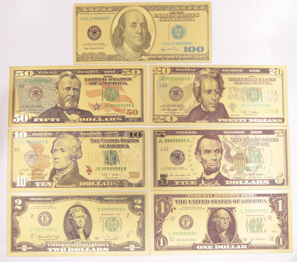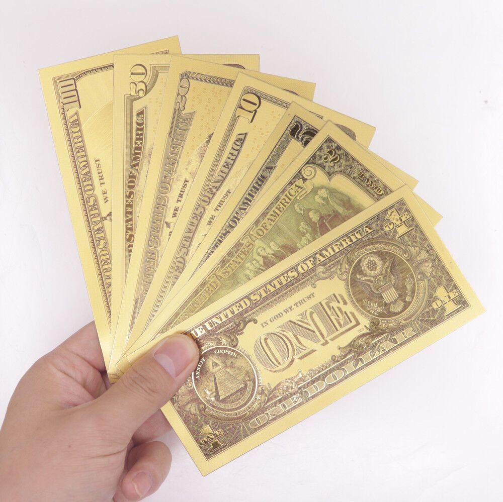 7 Stück Souvenier Dollar Banknoten Goldfolie USA