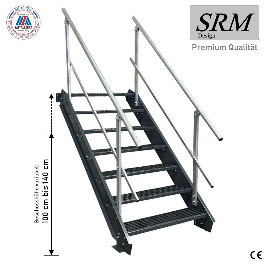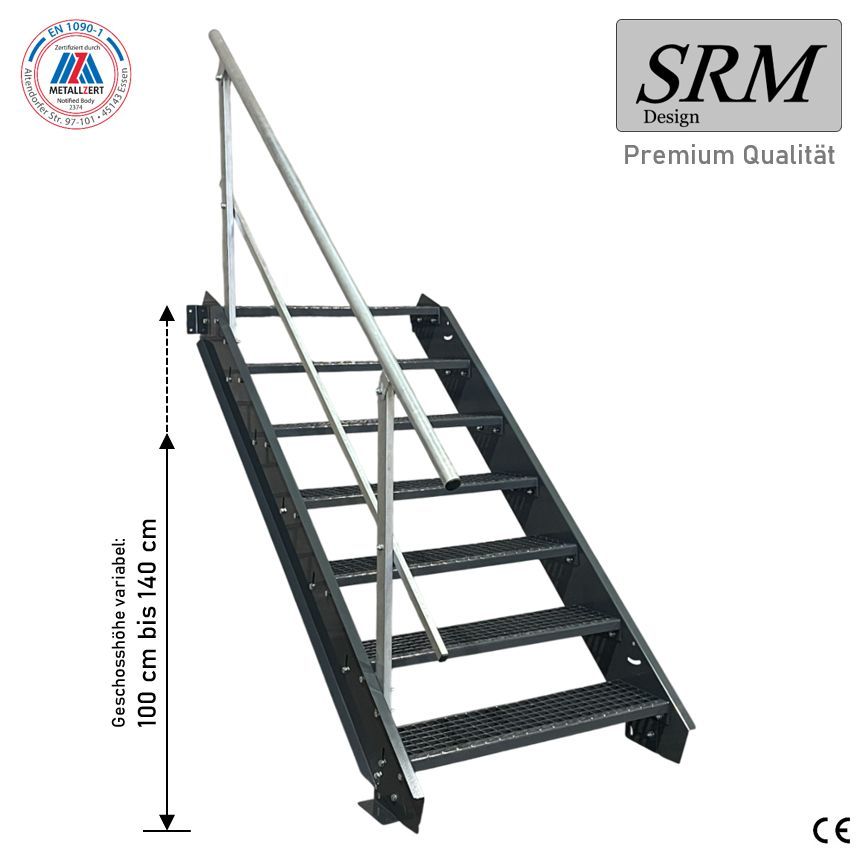 7 Stufen Stahltreppe komplett anthrazit Breite 60 - 160 cm Höhe 100 - 140 cm