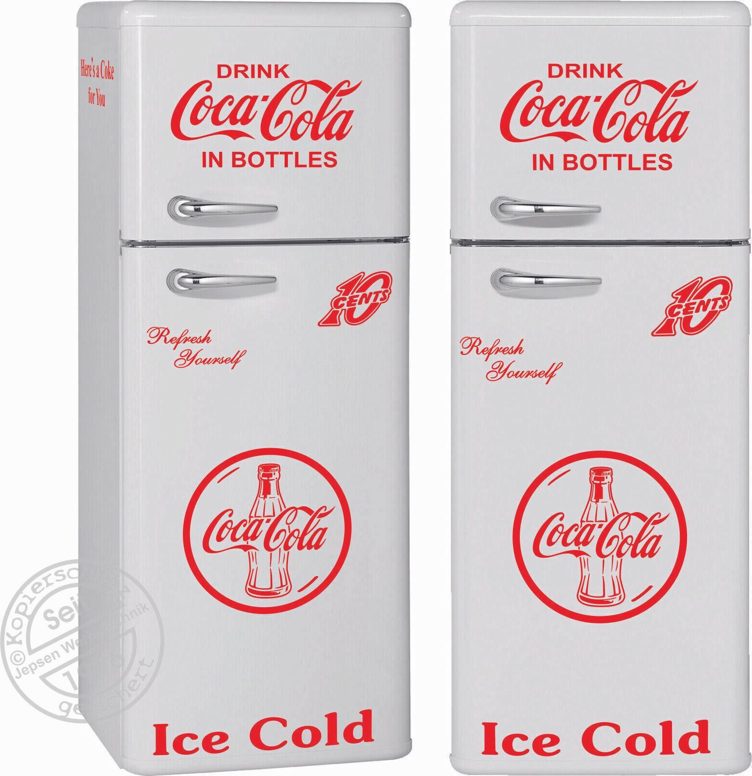 7 teiliges Aufkleber Set Coca Cola 10 Cent K2 Rot für Kühlschrank Bomann Amica