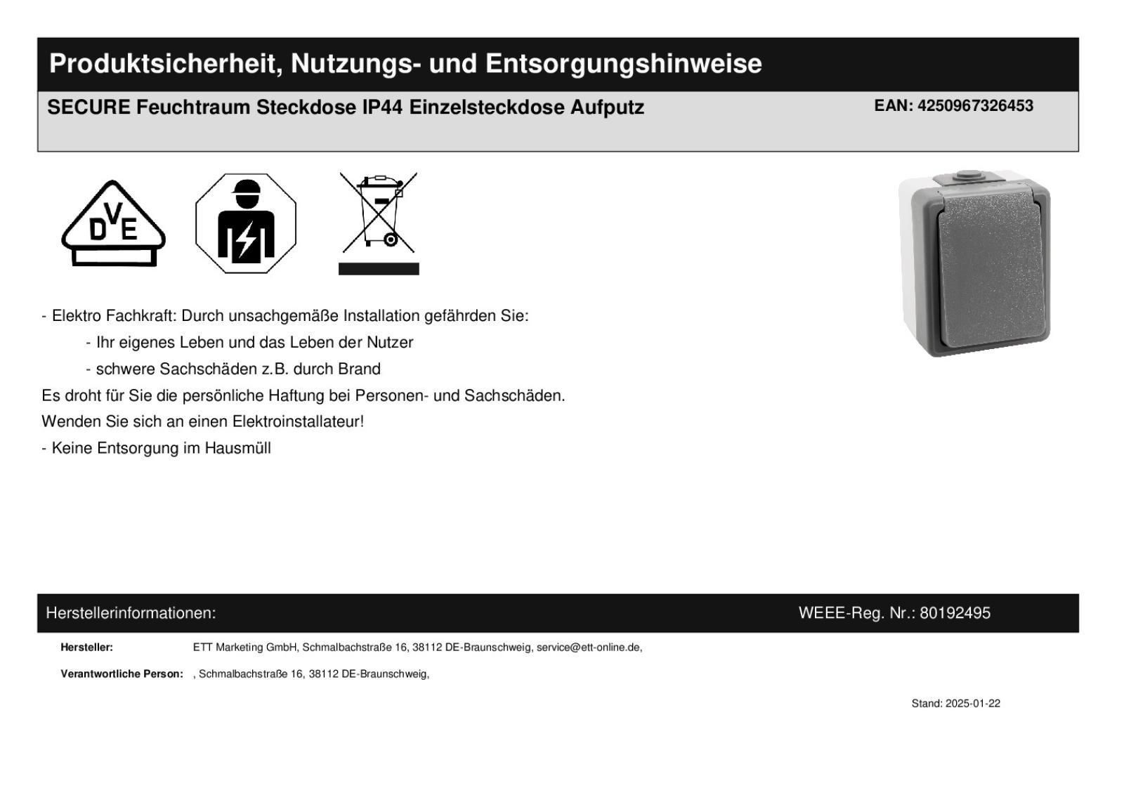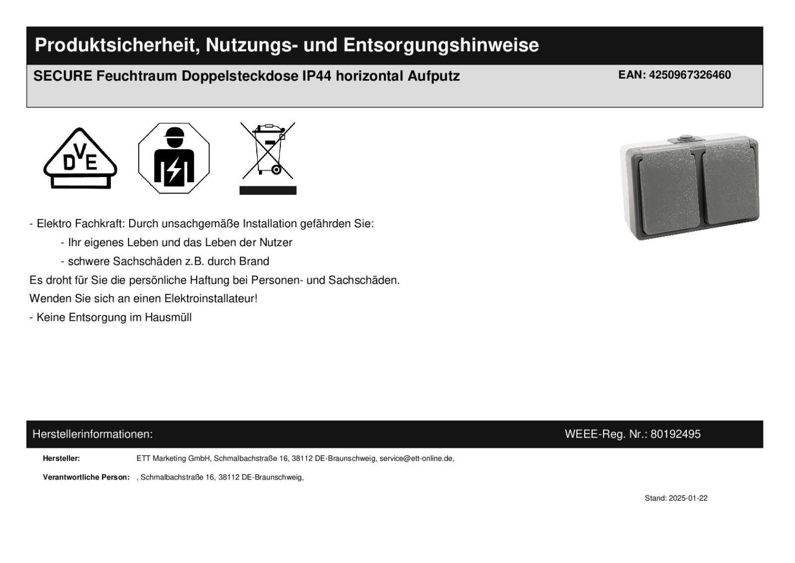 ETT 7 teiliges Feuchtraum Steckdosen Set IP44 Aufputz 1-fach 2-fach 3-fach Steckdose