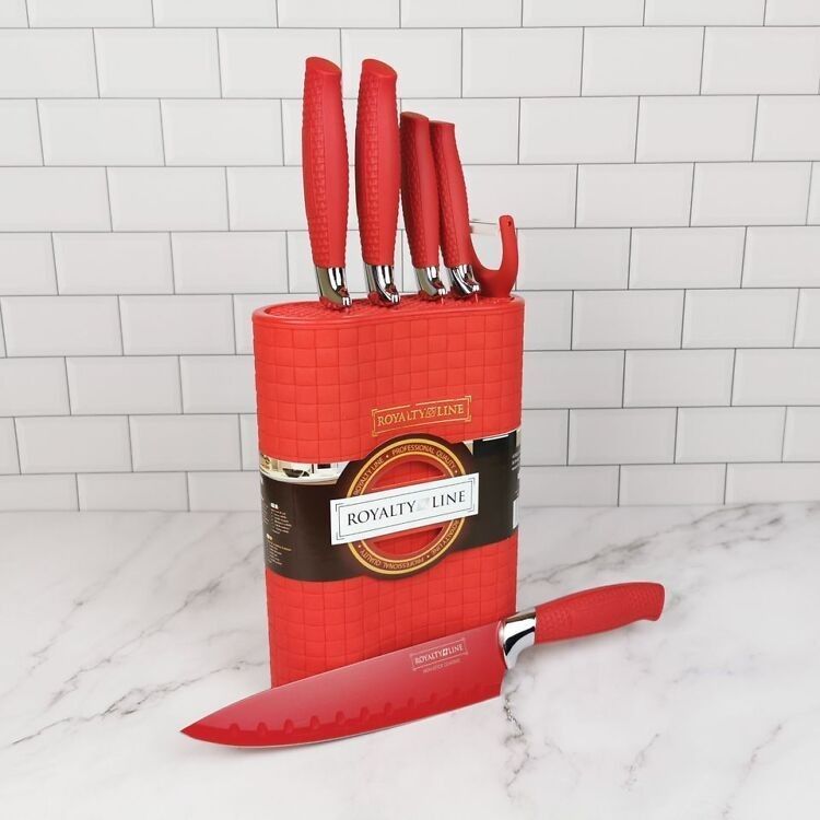 7-teiliges Messerset mit Messerblock - Edelstahlklingen & Keramikschäler, Rot