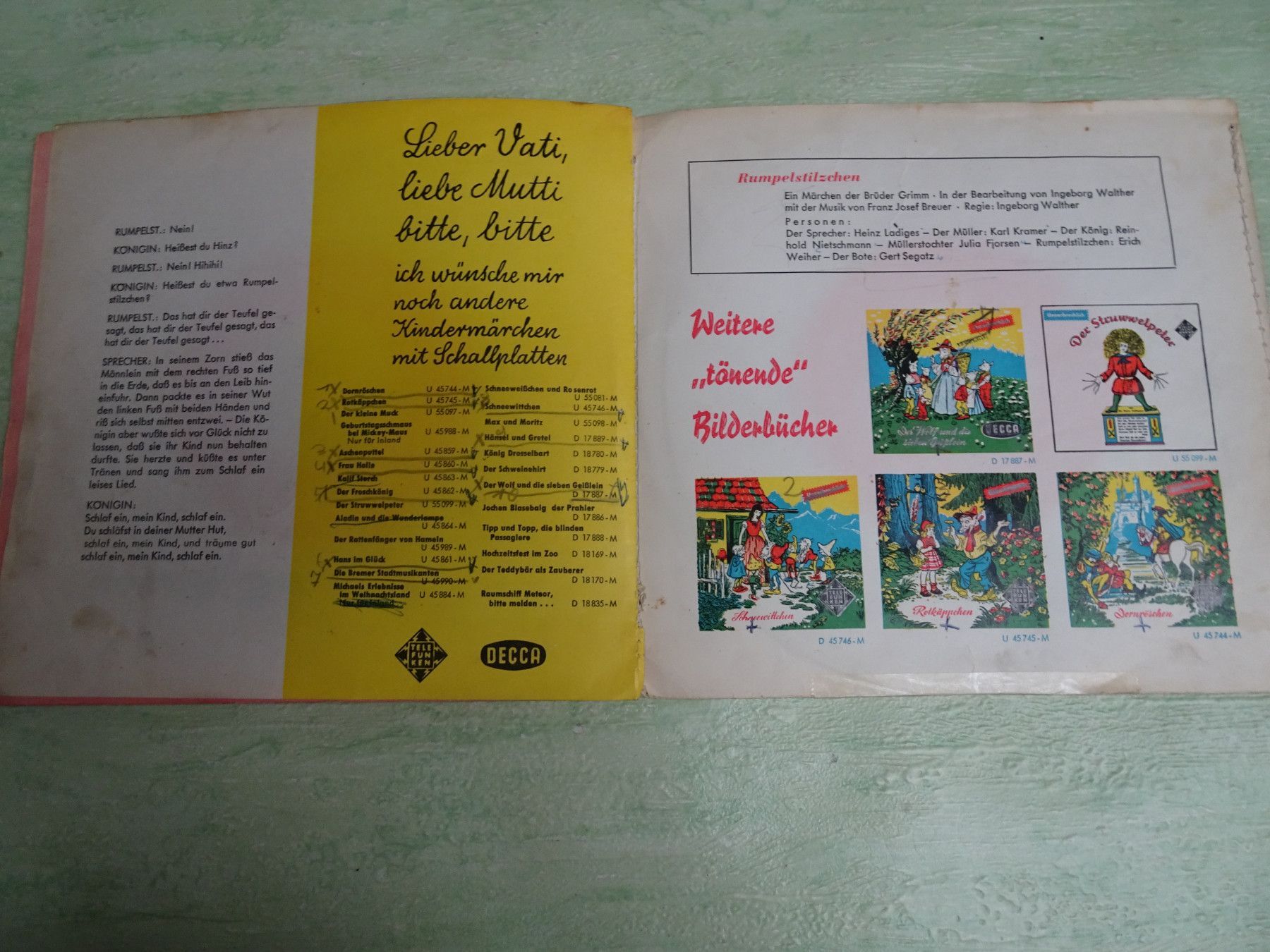 7" Tonbuch Telefunken U45747-M Rumpelstilzchen Brüder Grimm Ingeborg Walther