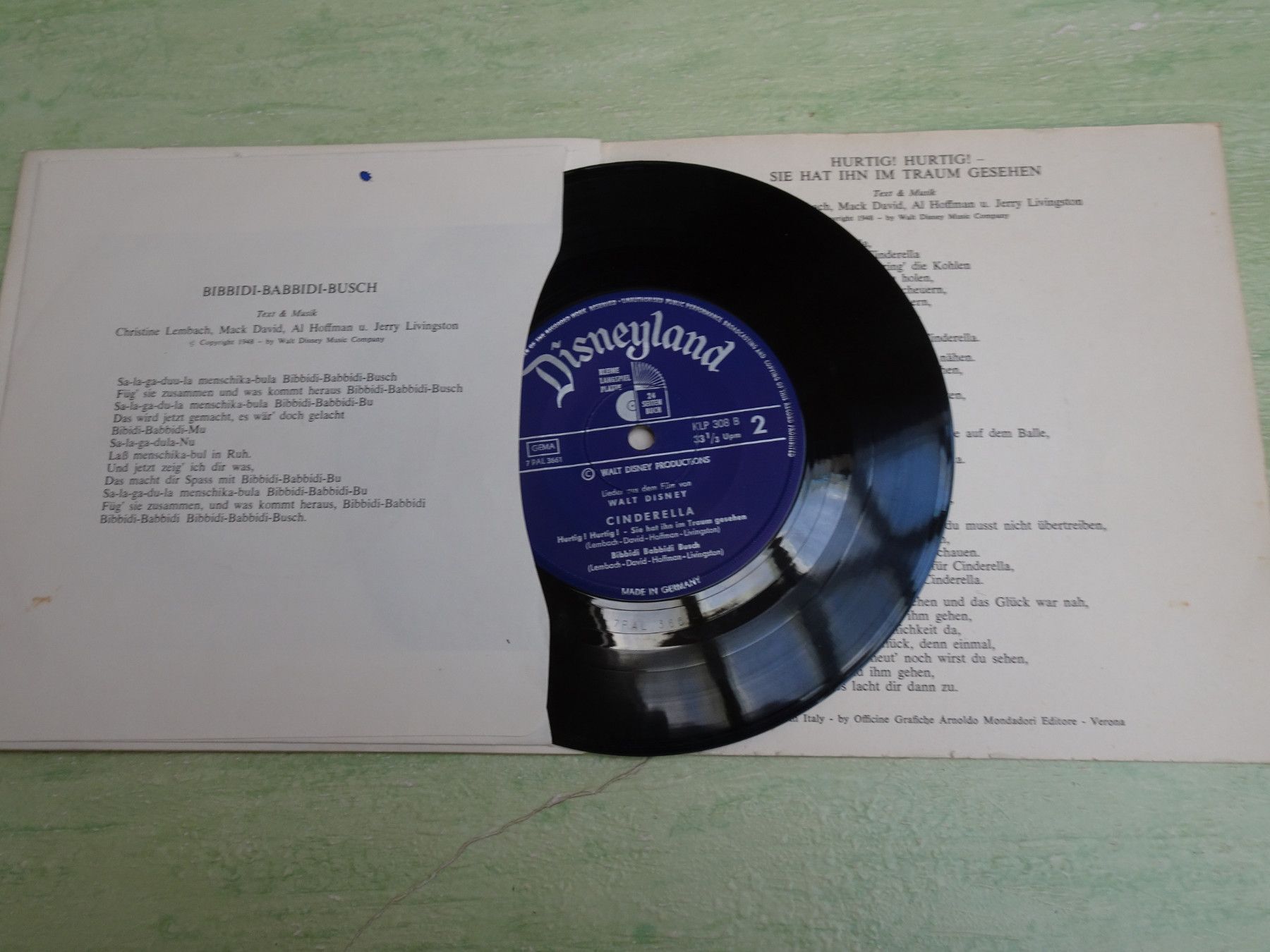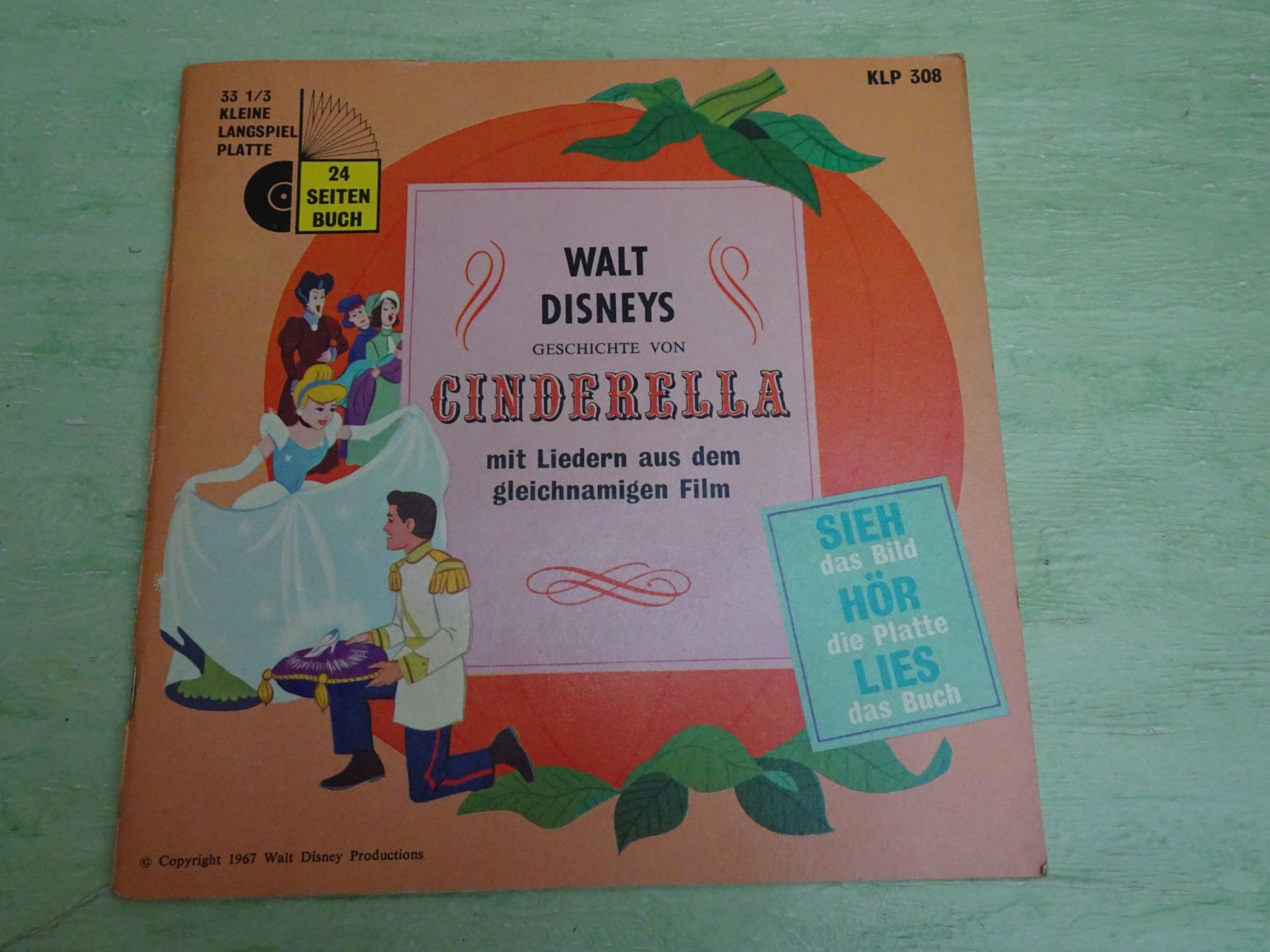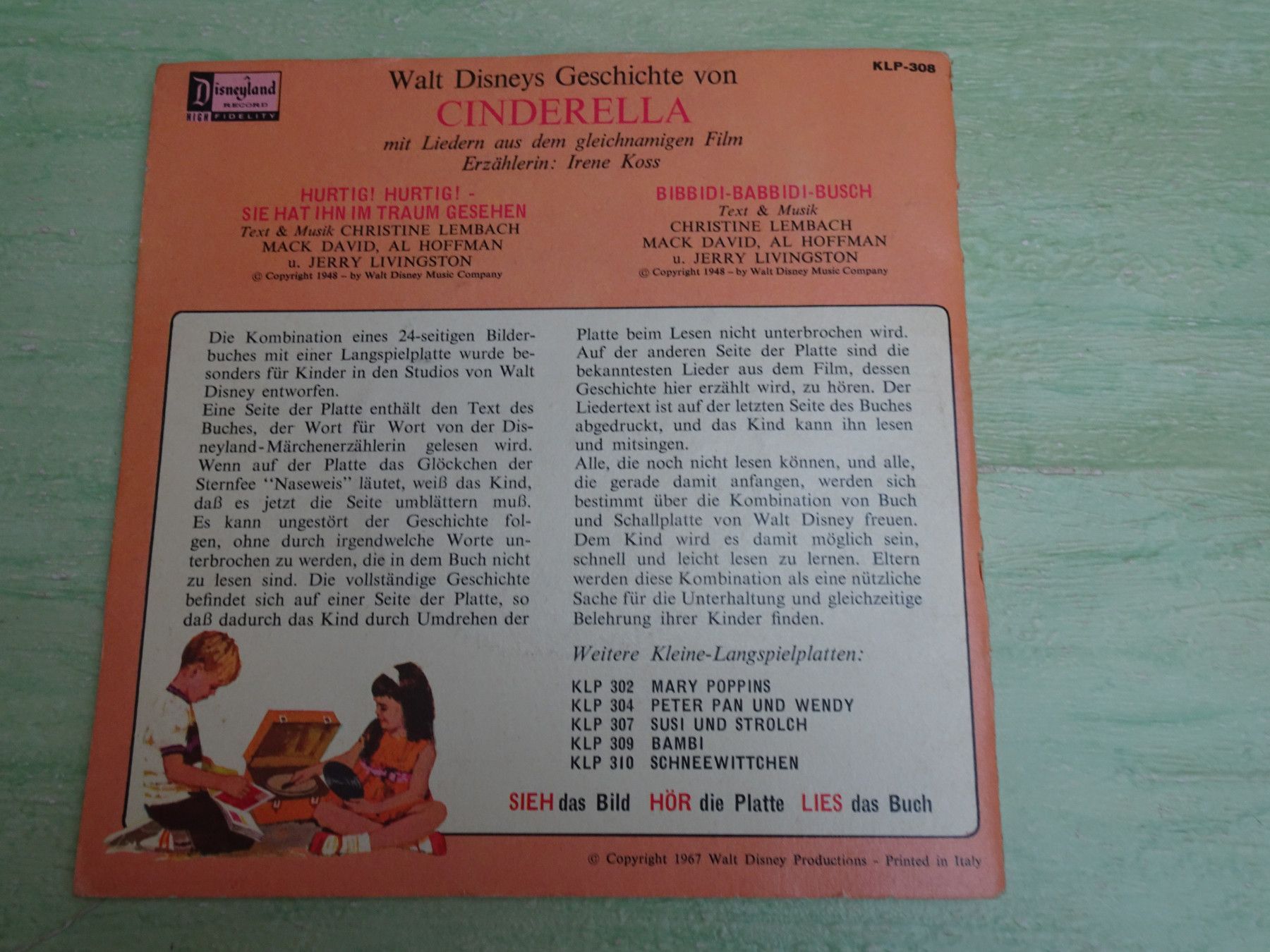 7" Tonbuch Walt Disney Cinderella Irene Koss Sie Hör Lies KLP 308