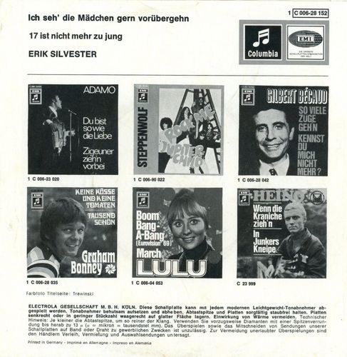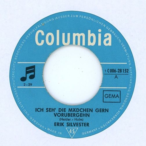 7 Vinyl Erik Silvester / Ich seh die Mädchen gern vorübergehn