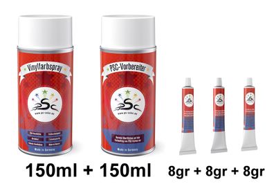 Set 1 : 2x 150ml, Vinylfarbe & Vinyl-Kunstleder-Reiniger Ferrari Rot
