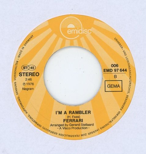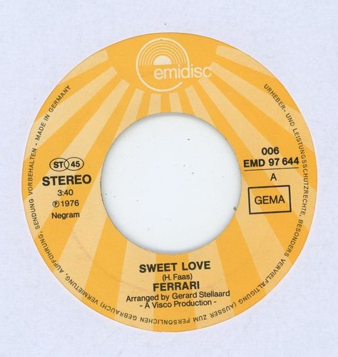 Ferrari - Sweet love 7'' Vinyl Germany SUNG IN GERMAN