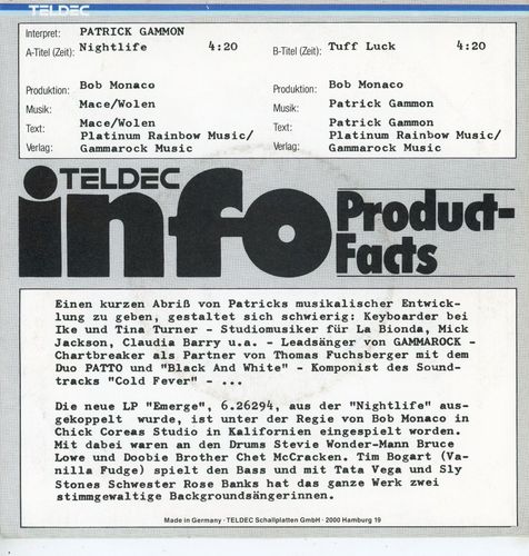 7 Vinyl Patrick Gammon * Night Life