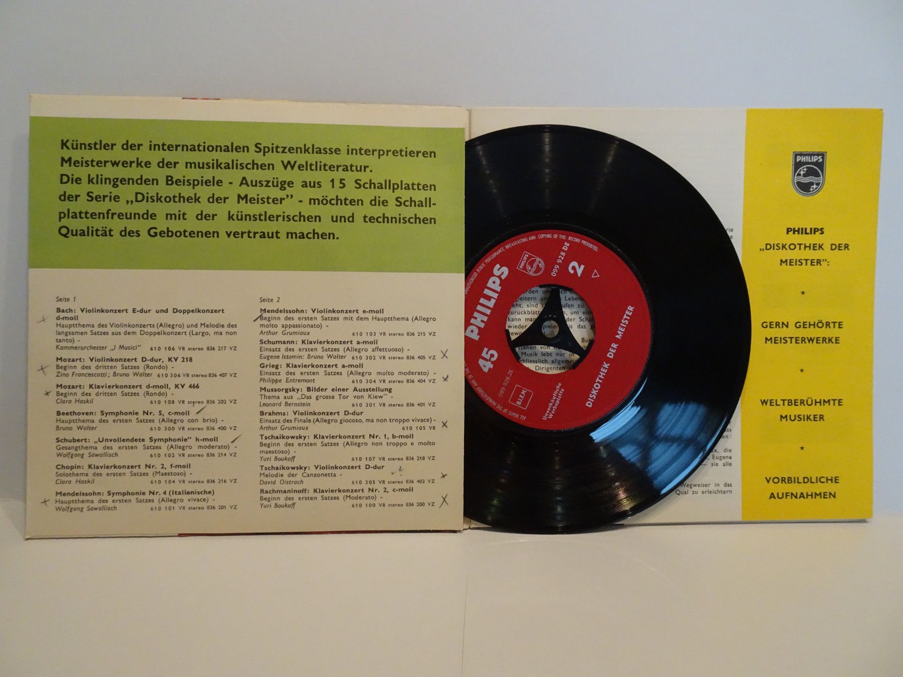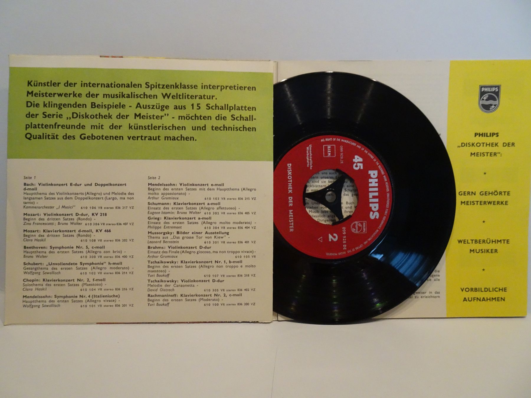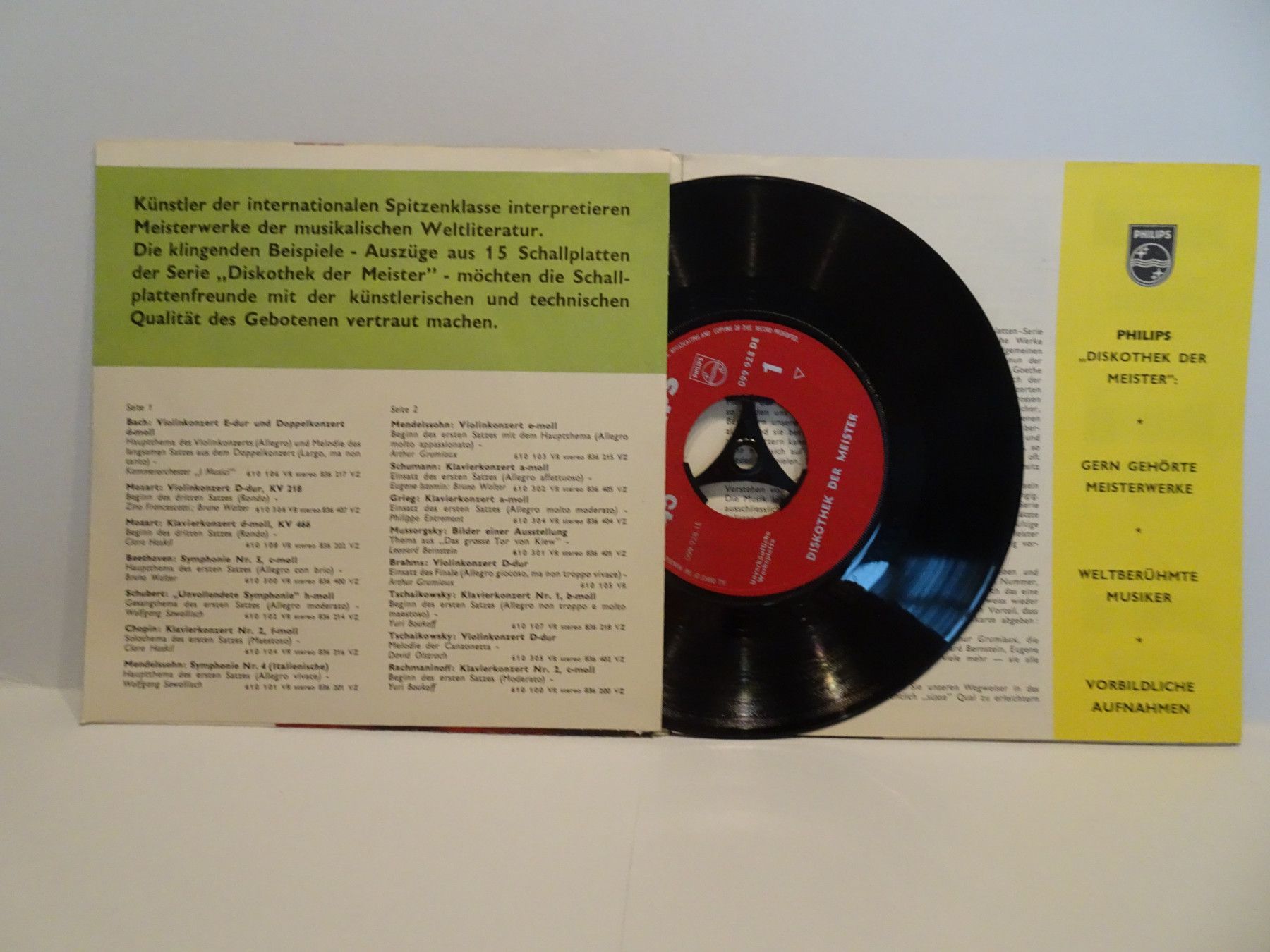 7" WerbeSingle Tonbuch Philips klingender Katalog der Klassiker Diskothek der Meister