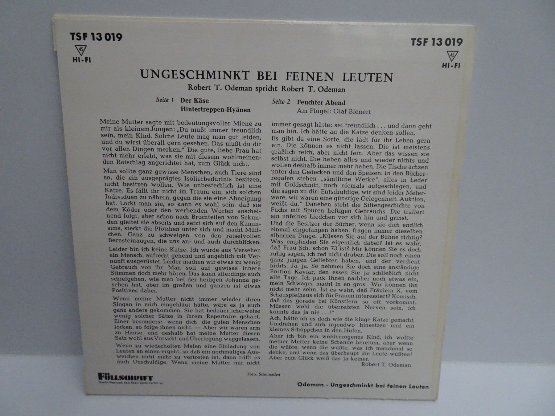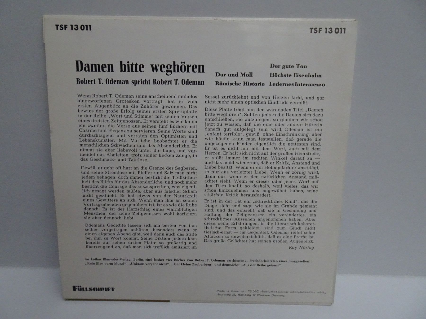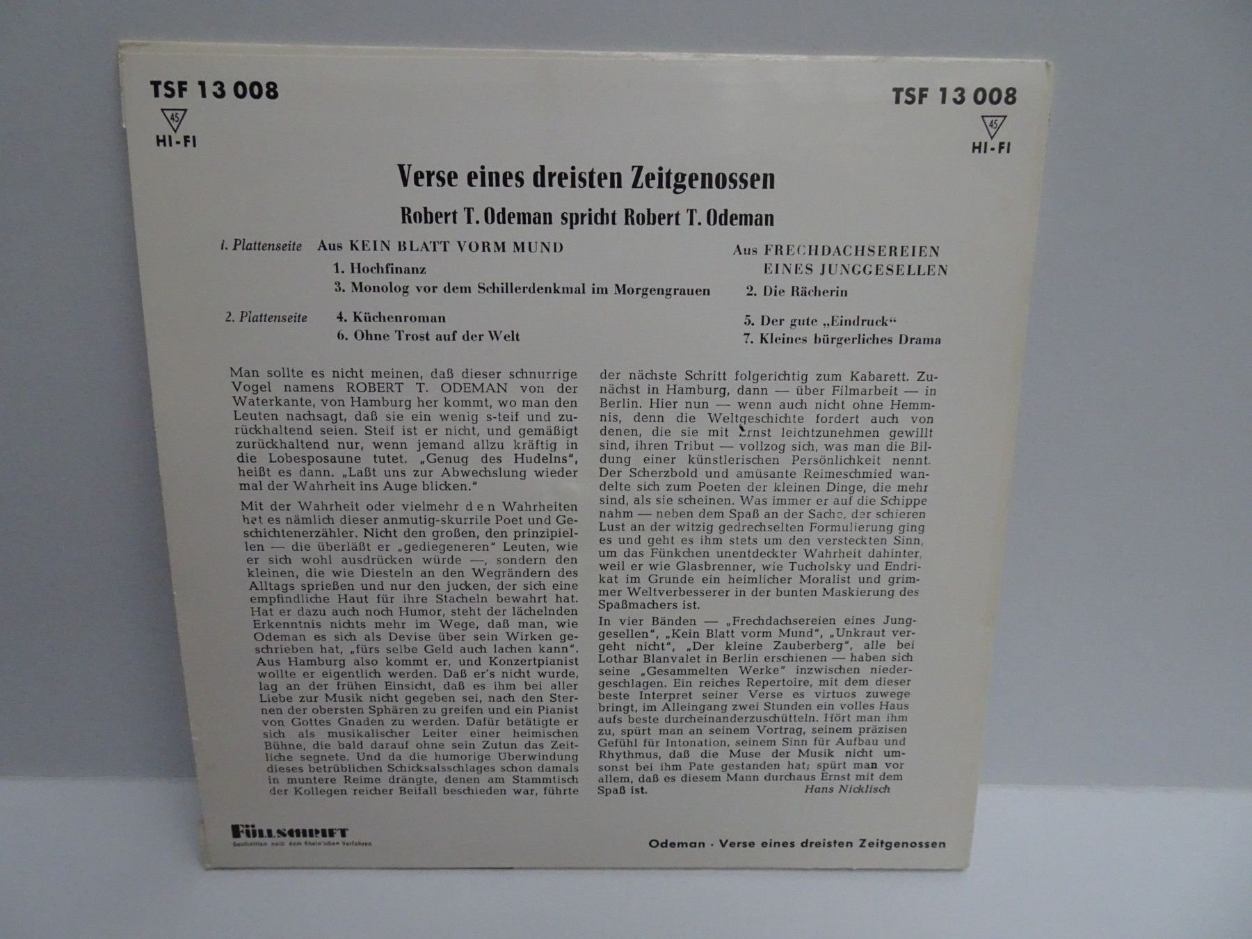 7" Wort & Stimme Robert T Odemann spricht Verse Zeitgenossen Damen In flagranti uva