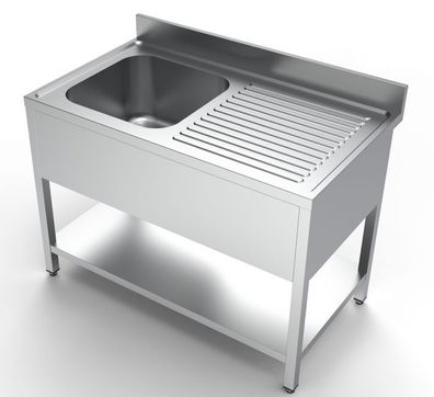• Spültisch Spülbecken links mit Grundboden 1200 x 600 x 850 Edelstahl NEU Gastlando