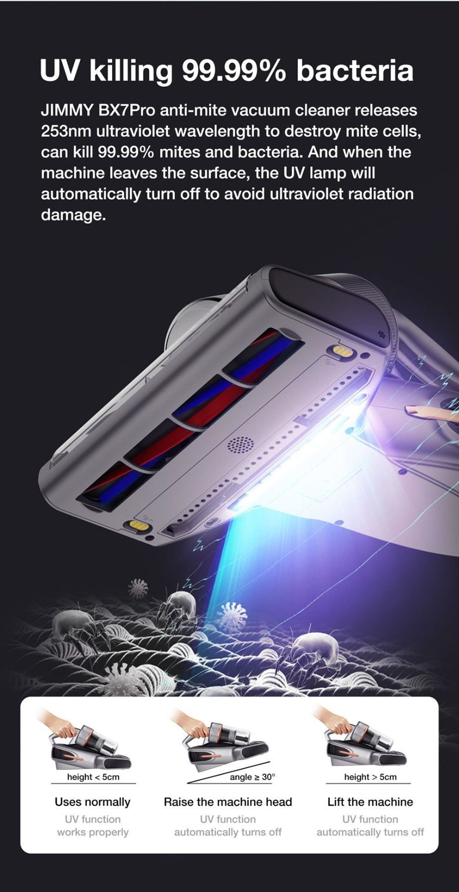 700W JIMMY BX7 Pro Anti-Milben-Bettstaubsauger für Bett, Tierhaare, Sofa, Kleidung