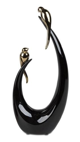 Formano 701947 Deko-Objekt mit Vogel Schwarz-Gold 13x31cm aus glasierter Keramik