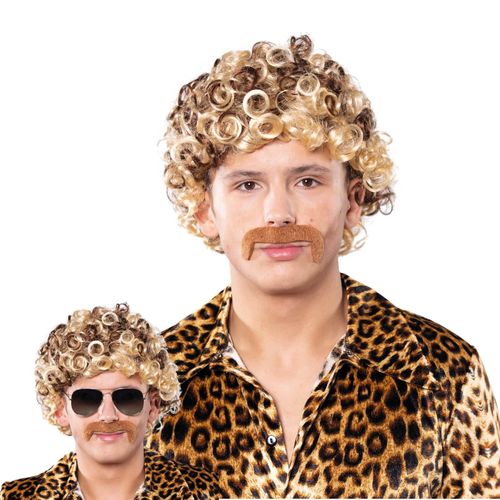 70er Jahre Perücke lockig blond braun Disco Zuhälter Karneval Fasching