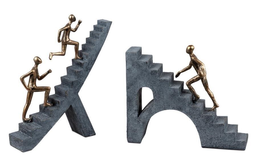 Formano 710574 Deko-Objekt 2x Treppen-Steiger Grau-Gold 22cm aus Kunststein gefertigt