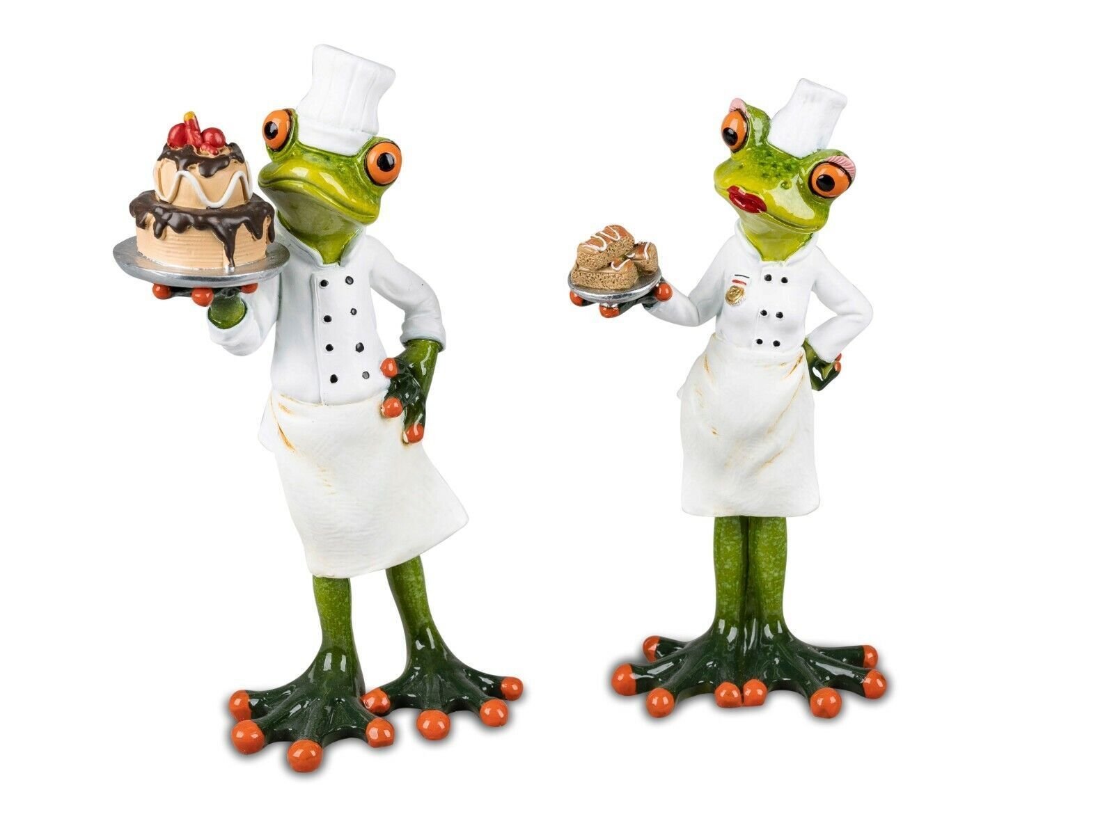 formano 717351 Frosch Paar Hobby Bäcker hellgrün 14cm aus Kunststein & witzige Details