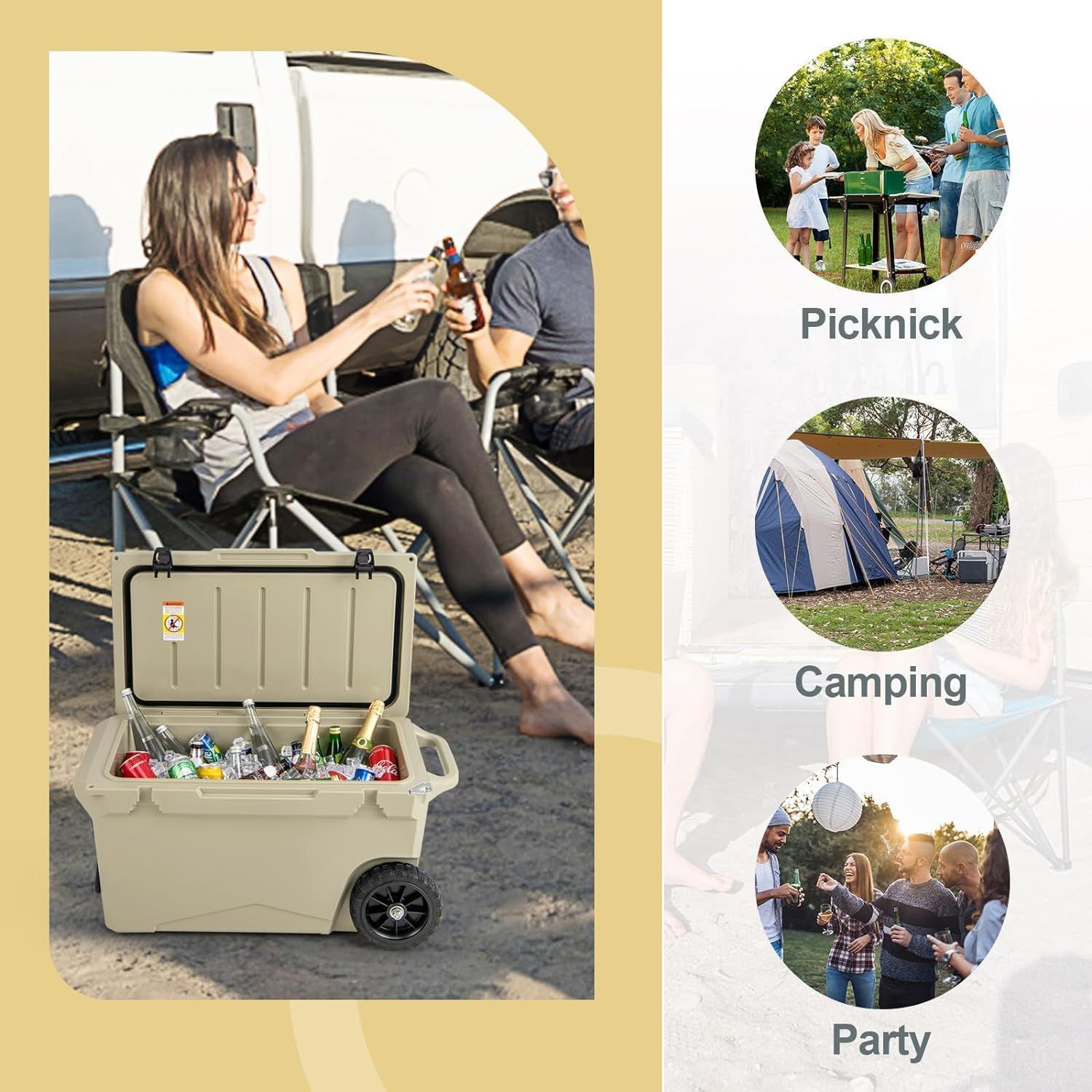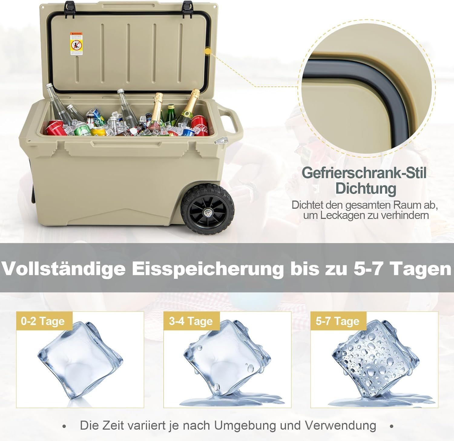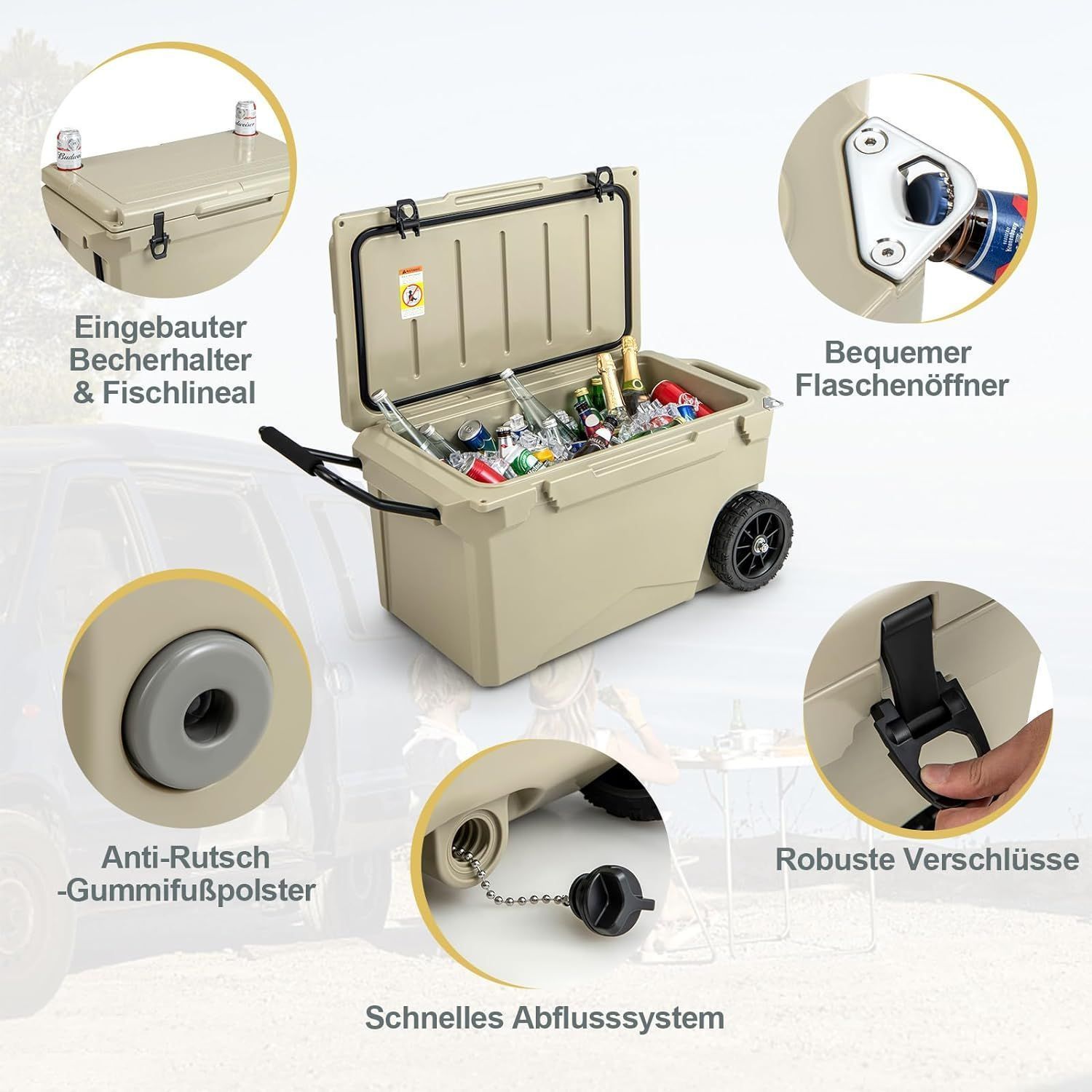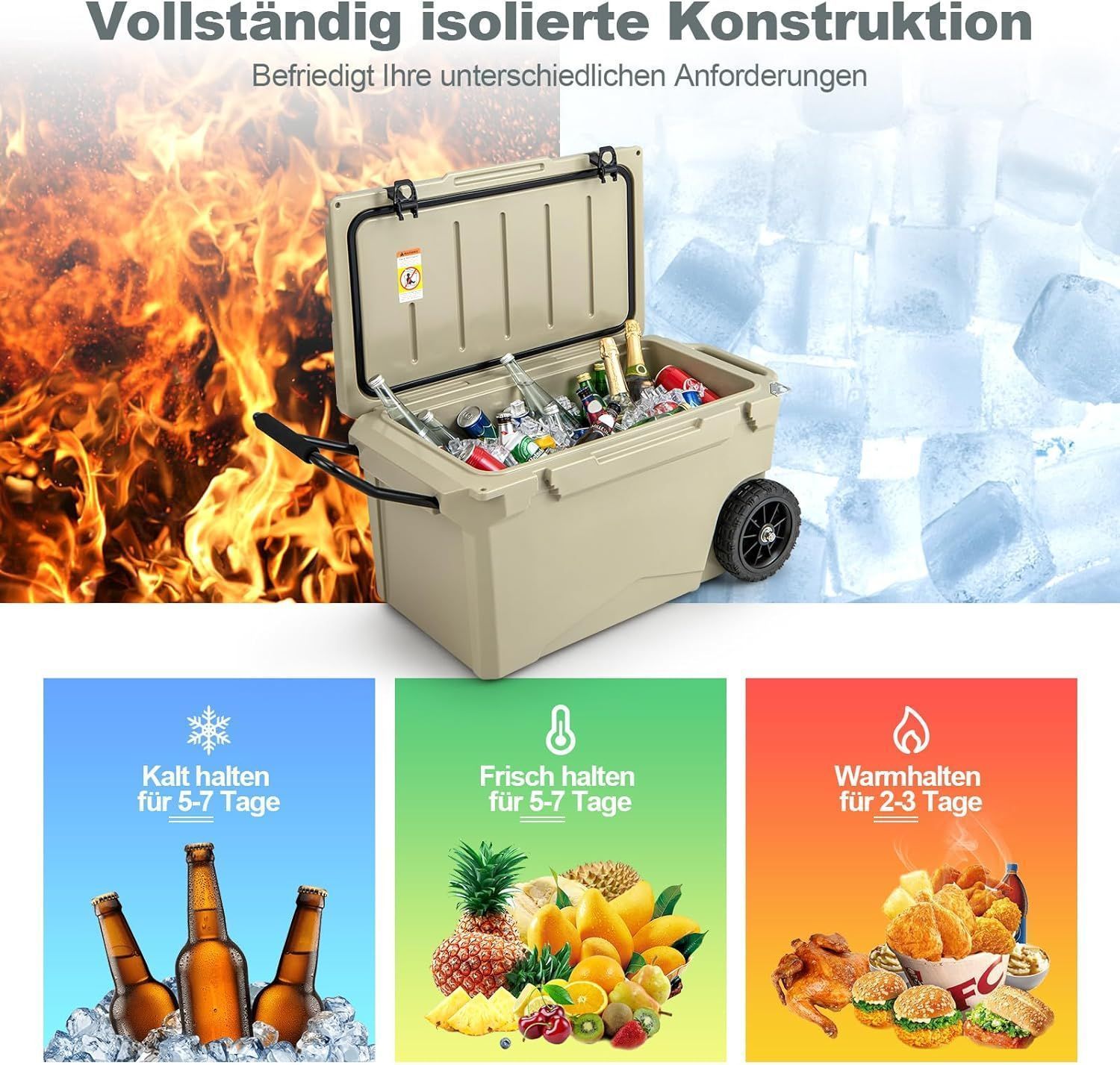 71L Isolierbox tragbar, Kühlbox grau inkl. Alugriff & großen Rädern, Wörmebehälter