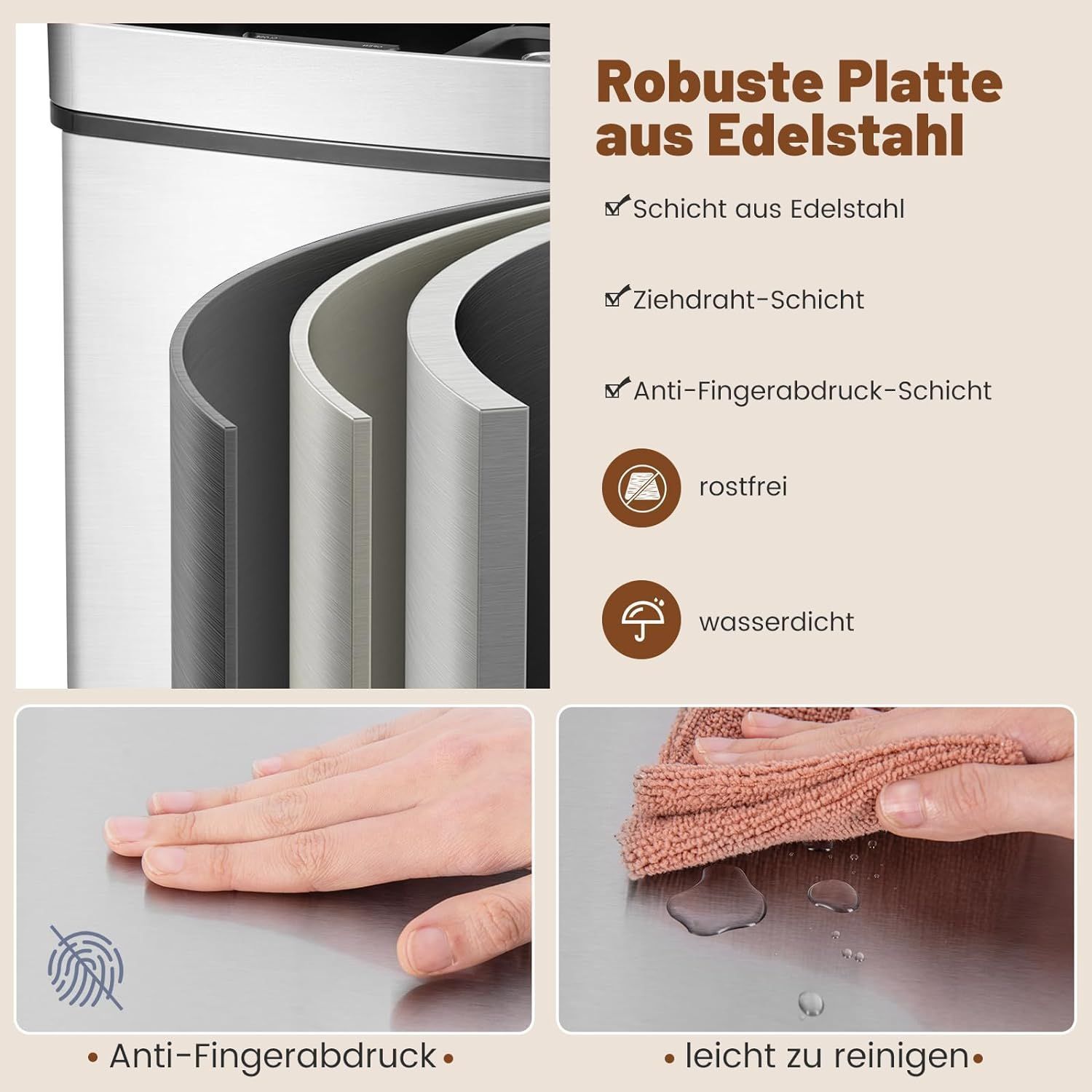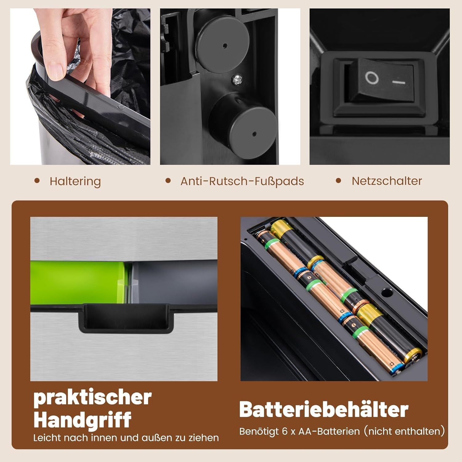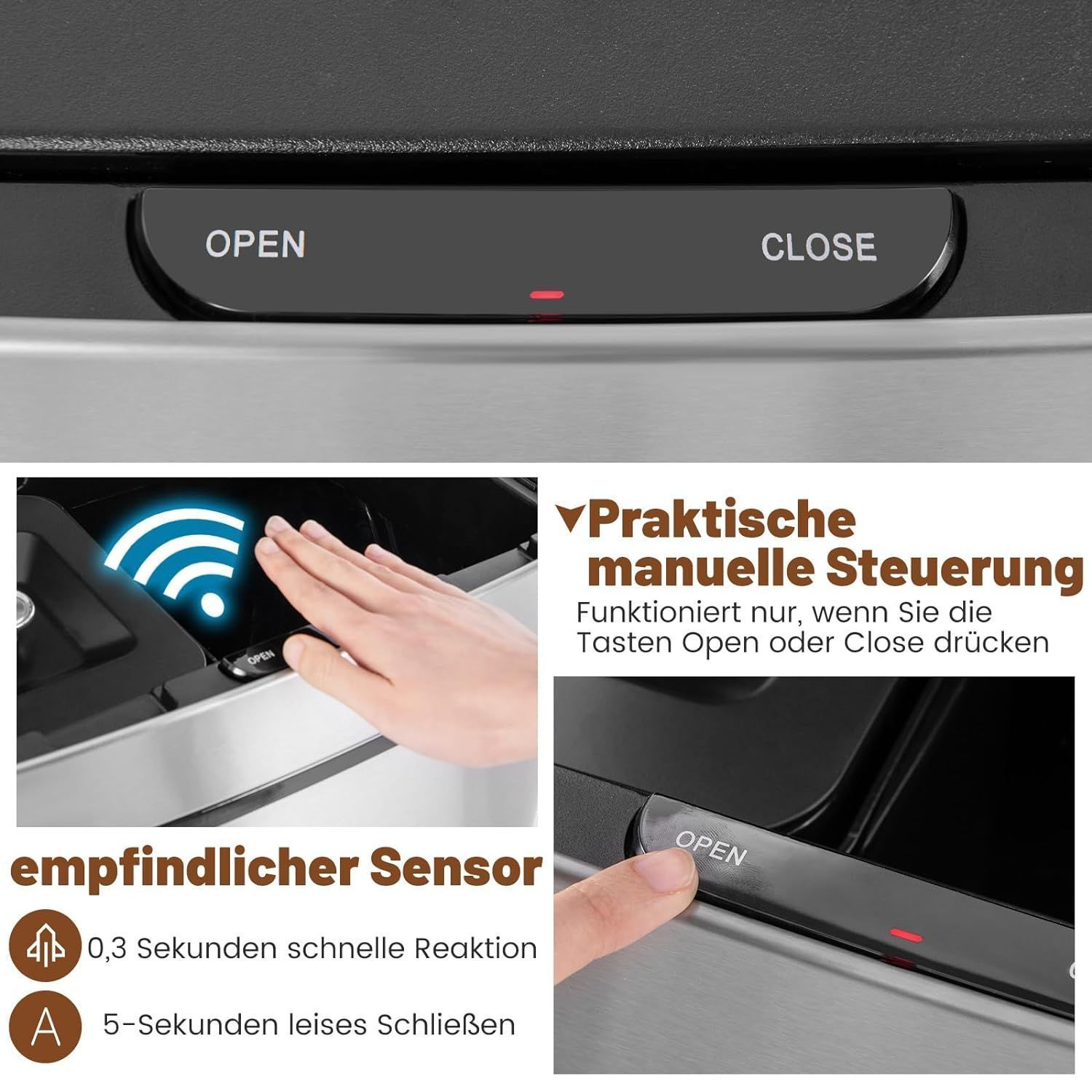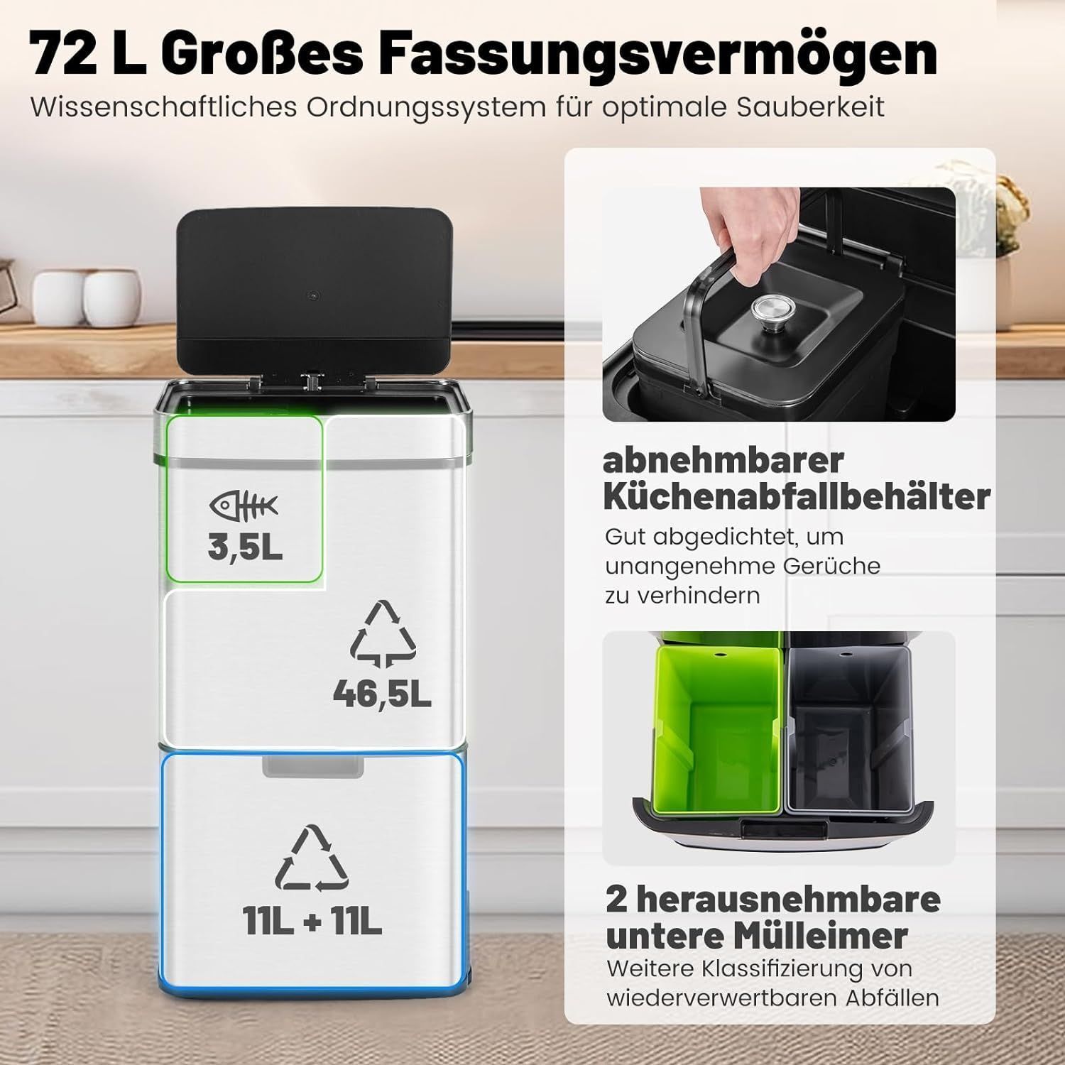 72L Mülleimer 4 Fächer, elektrischer Abfalleimer mit Sensor, Mülltrennsystem