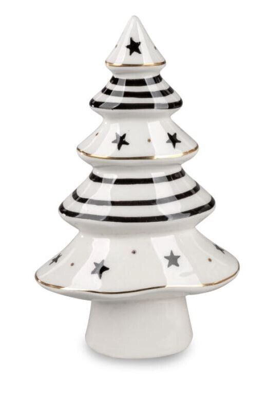 Formano 734792 Deko-Baum schwarz-weiss 16cm aus glasiertem Steingut mit Lithografie-Deko