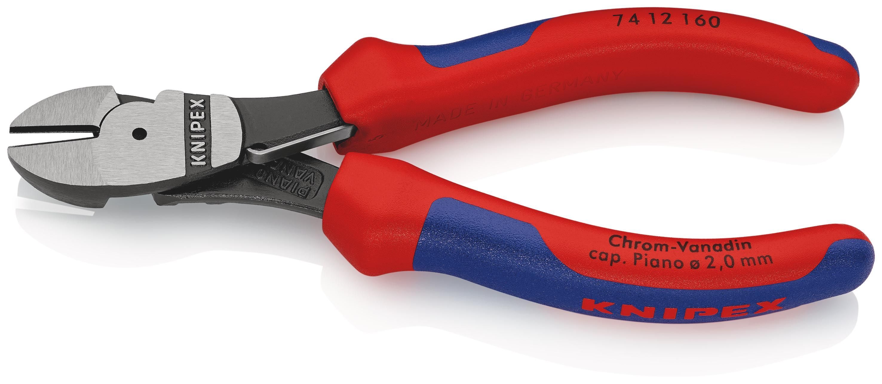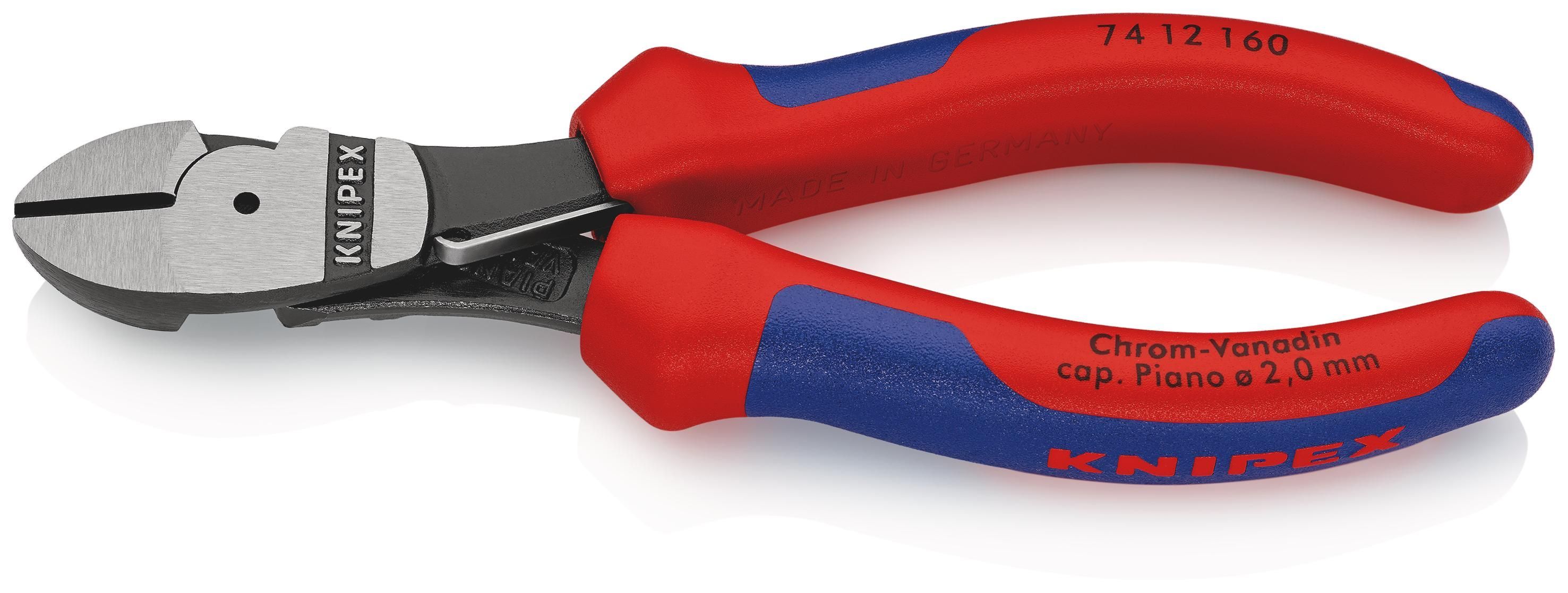 KNIPEX 74 12 160 Kraft-Seitenschneider mit Mehrkomponenten-Hüllen schwarz atramentiert 160