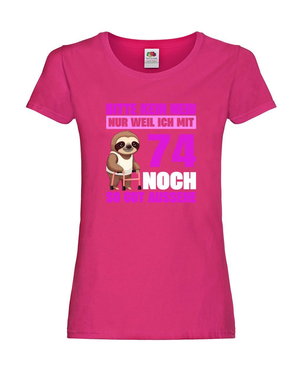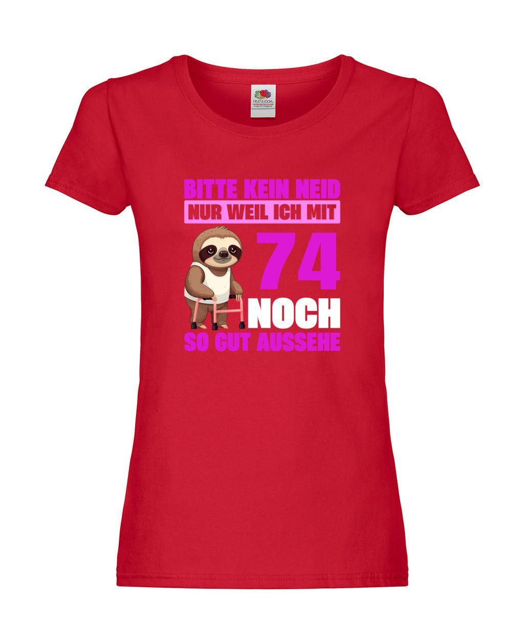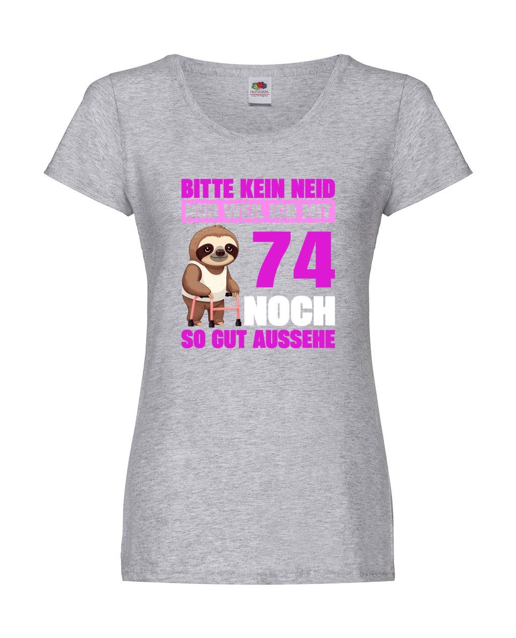 74. Geburtstag | Bitte kein neid | Faultier | 74 Jahre Damen Shirt Schwarz