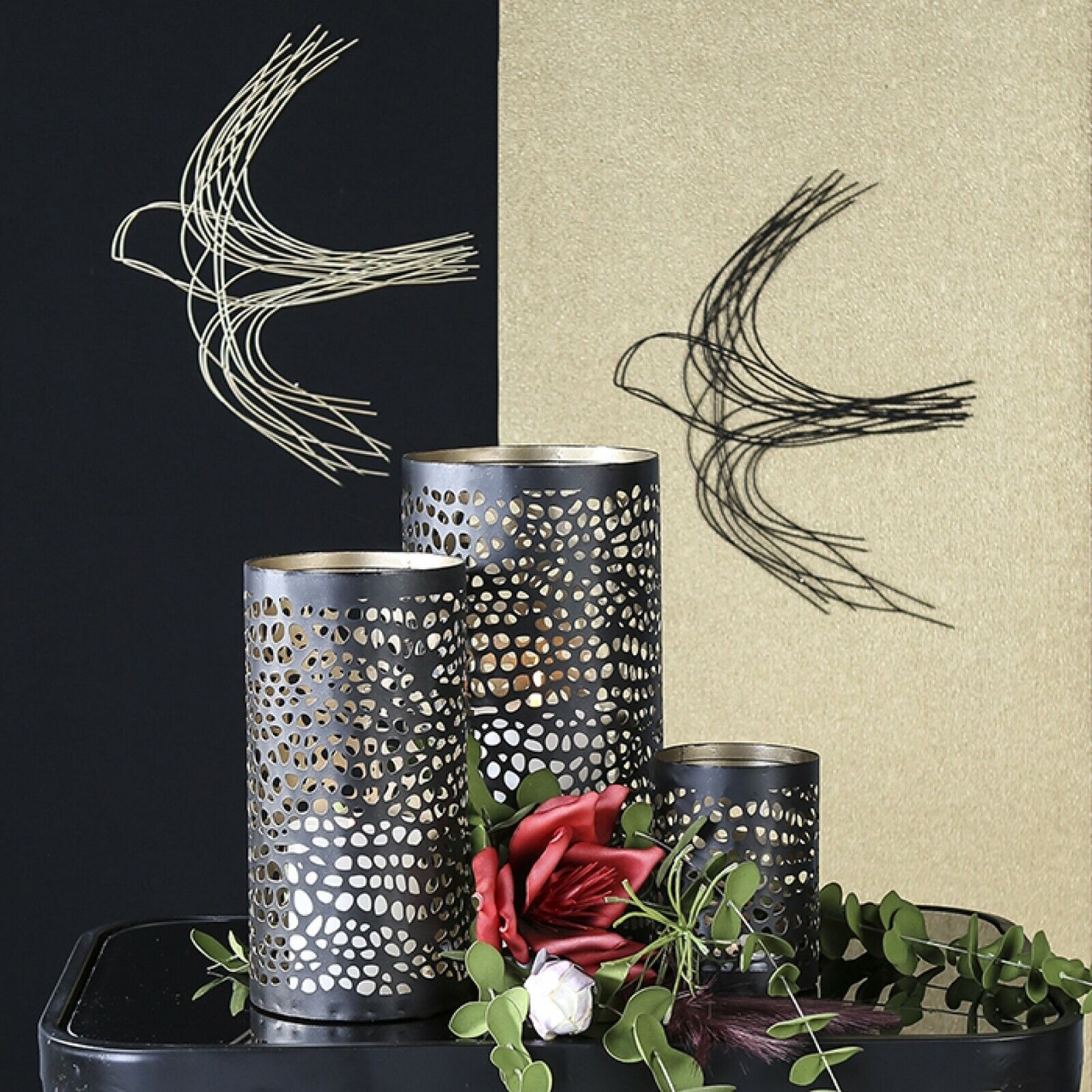 74957 Wanddeko Schwalbe Metalldraht goldfarben höhe 31cm Breite 38cm