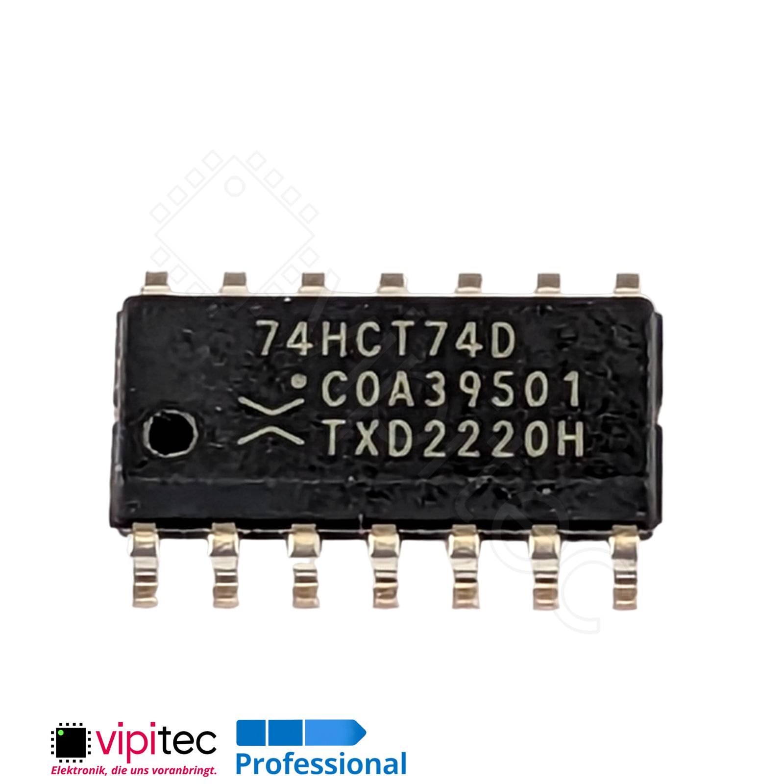 Der 74HCT74 ist ein duales D-Flip?Flop in SO?14-SMD-Ausführung, das zwei unabhängige, flankengetriggerte D-Speicherzellen mit asynchronen Set- und Reset-Eingängen bietet. Ein D-Flip?Flop (auch D?Typ?Flipflop oder bistabile Speicherzelle) speichert den Zustand des Dateneingangs bei einer Taktflanke und liefert ihn über ein Q?Ausgangssignal sowie dessen komplementäres Gegenstück zurück. Solche Bausteine dienen in digitalen Schaltungen als grundlege