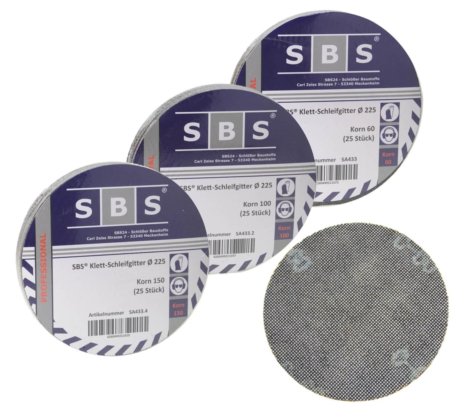 75 Blatt Gitterleinen Trockenbau Schleifgitter Sortiment 225mm K60-K100-K150