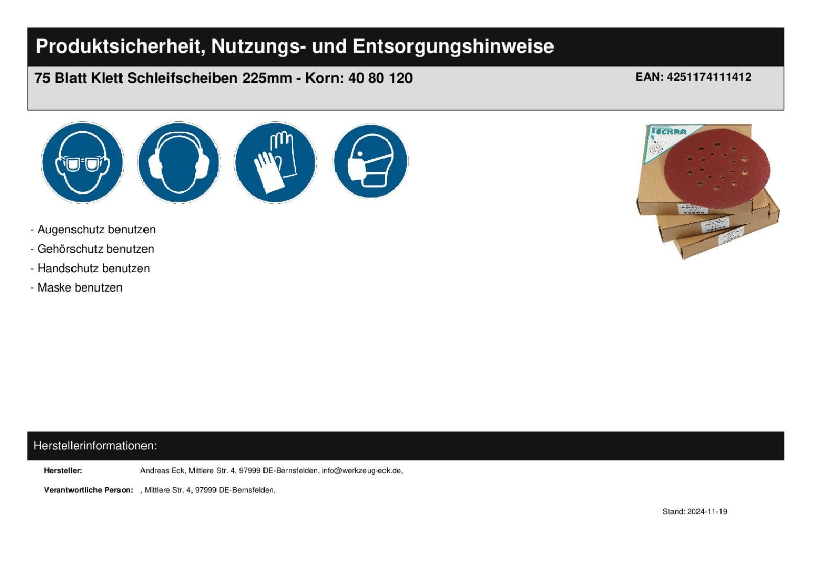 75 Blatt Klett Schleifscheiben 225 mm Korn 40 80 120 Trockenbau Deckenschleifer