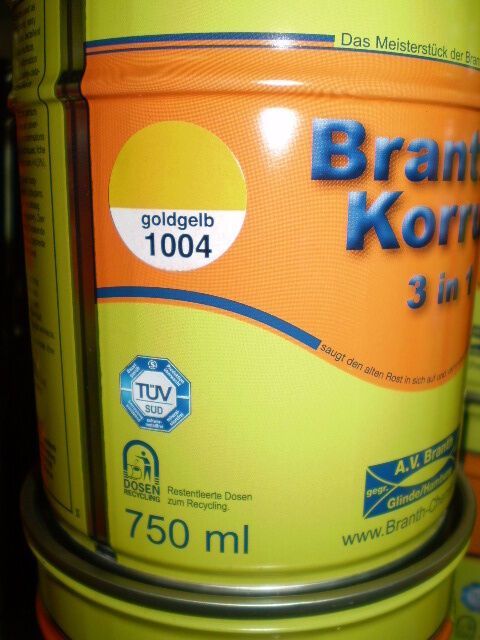 750ml Brantho Korrux 3in1 Rostschutz Farbe RAL 1004 goldgelb Metallschutz Branth
