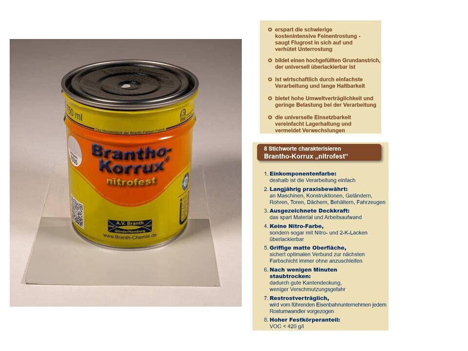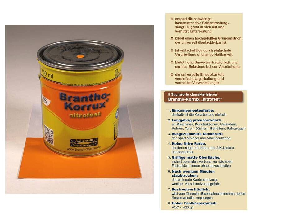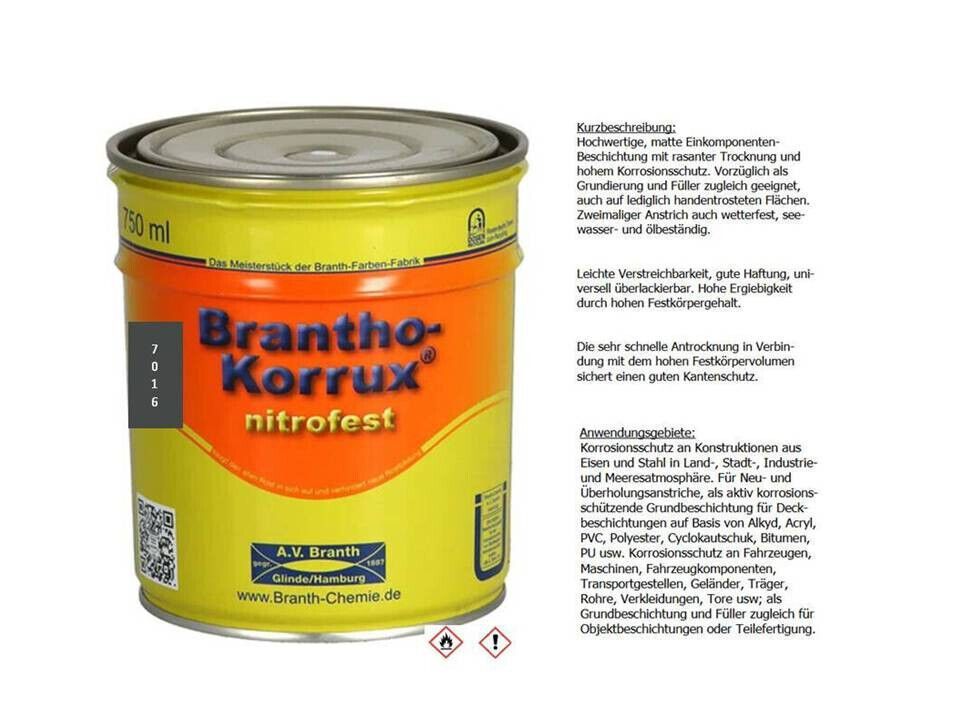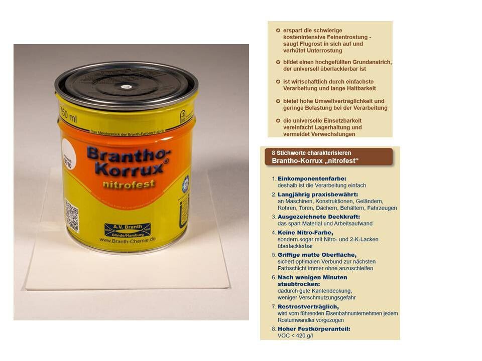 750ml Brantho Korrux nitrofest Rostschutz & Metallschutz Farbe matt Farbwahl