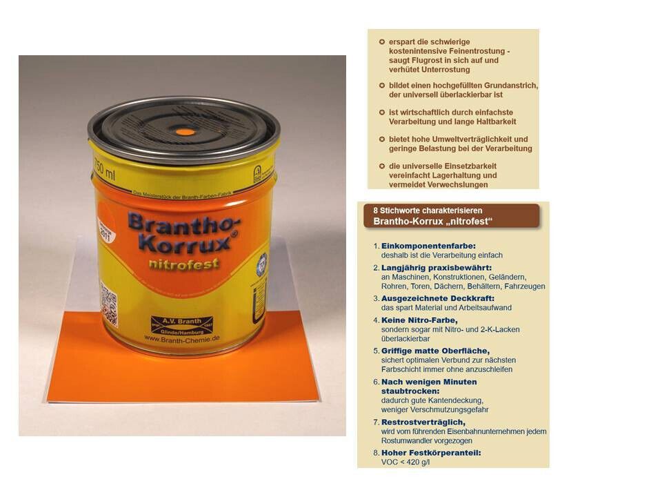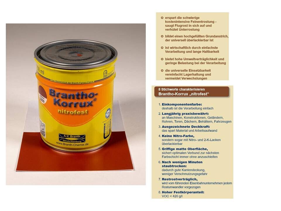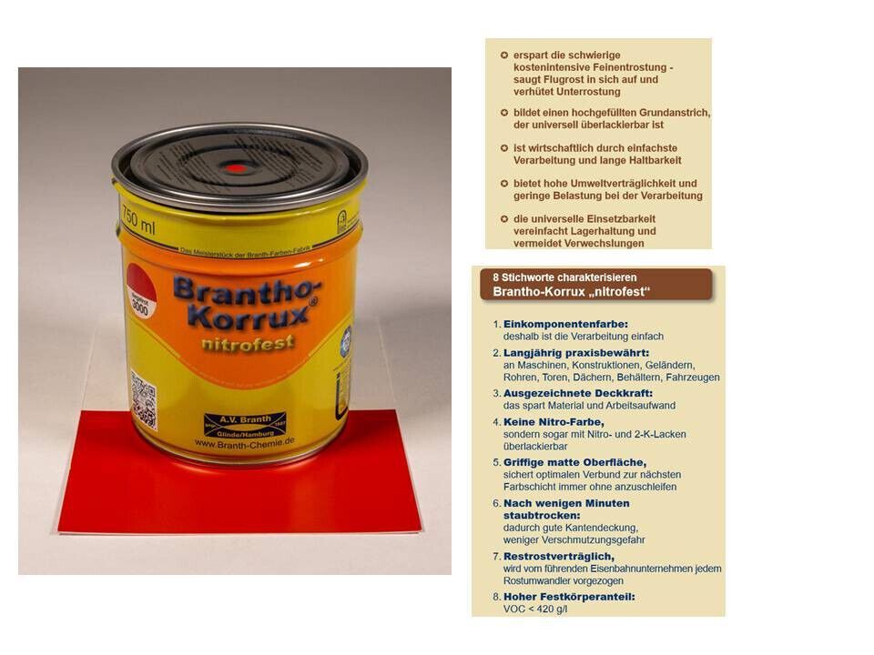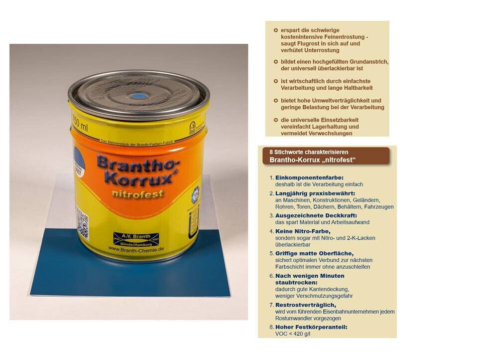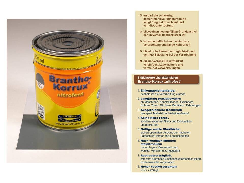 750ml Brantho Korrux nitrofest Rostschutz & Metallschutz Farbe matt Farbwahl