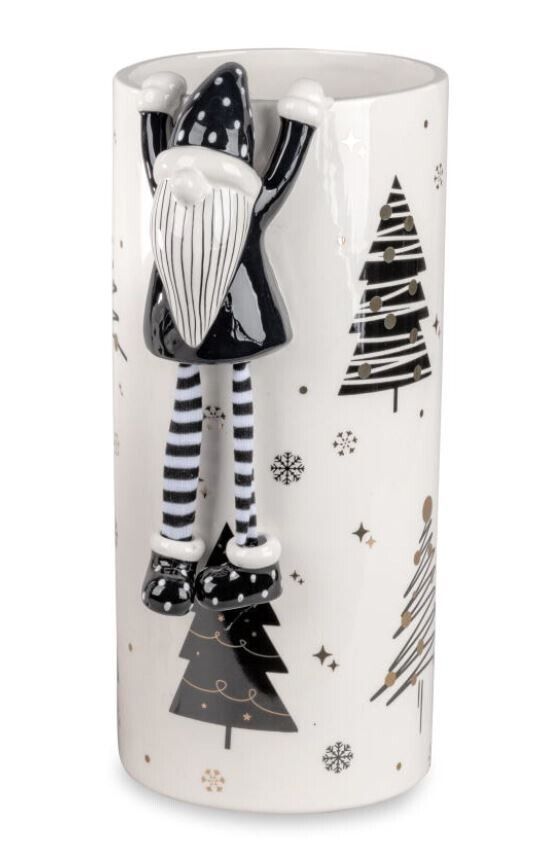Formano 754110 Vase Schwarz-Weiss 31cm aus glasiertem Steingut mit Lithografie-Dekor