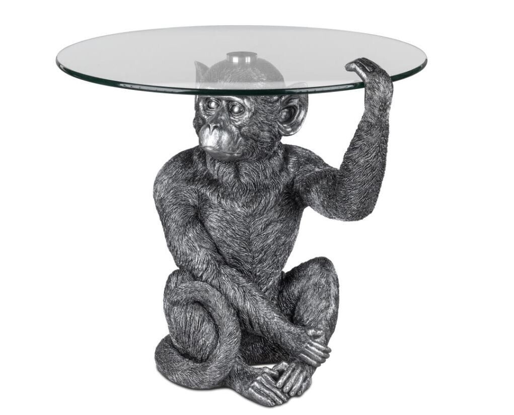 formano 779366 Deko-Tisch Affe Antik-Silber 58x51cm Kunststein mit massiver Glasplatte