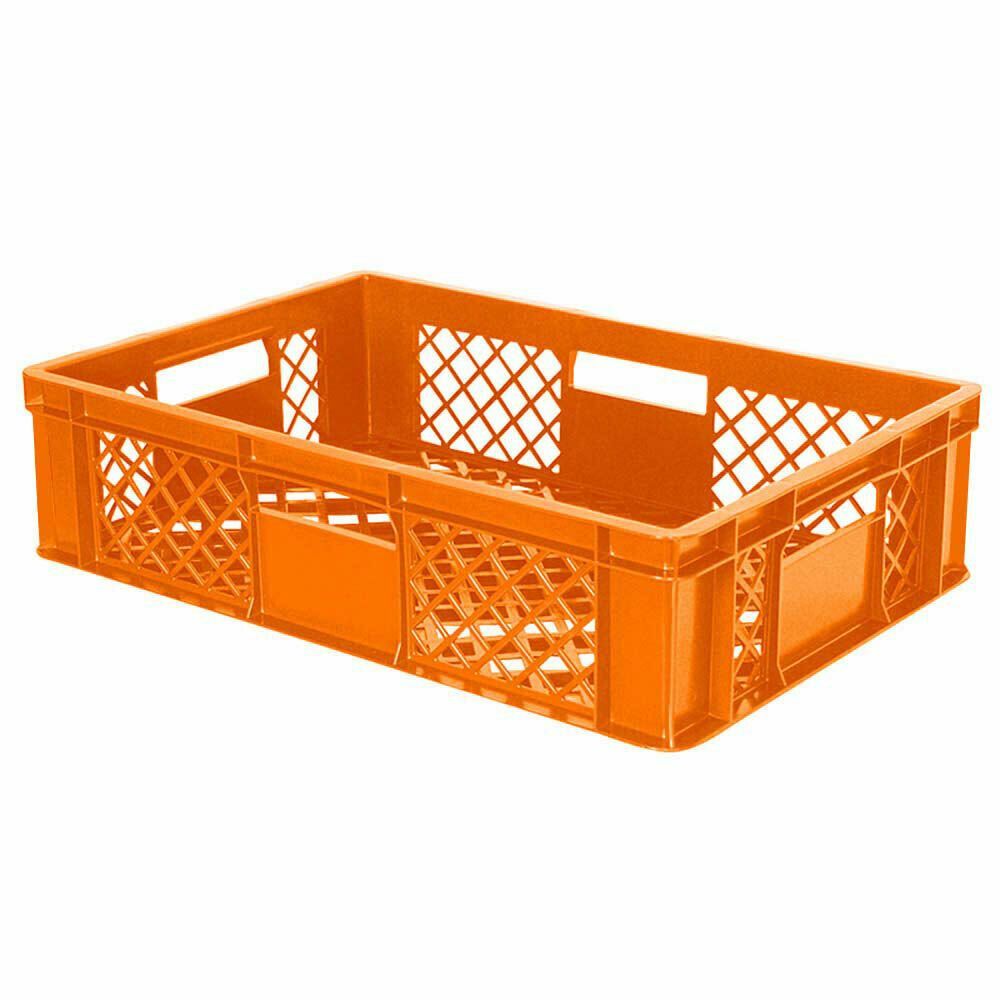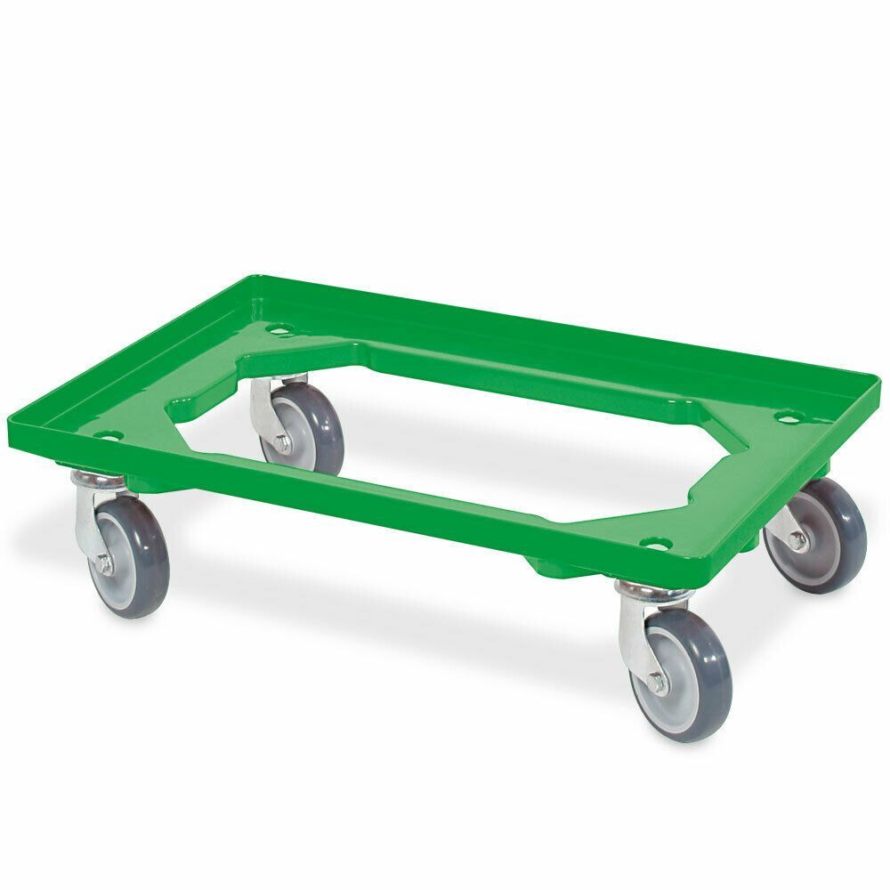 78 Bäckerkisten in 5 Größen, 600x400 mm, H 90 mm - 410 mm, orange + 5 Roller, grün
