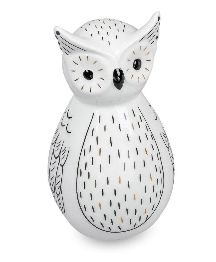 Formano 786043 Deko-Figur Eule 13cm aus Weiss-glasiertem Porzellan gefertigt und schwarz