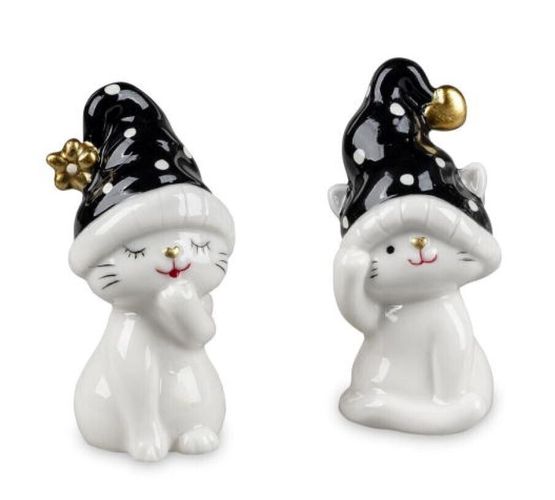 Formano 787347 Winterkatze Schwarz-Weiß 2sort. 8cm aus glasiertem Porzellan (Gr. Mittel)