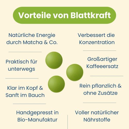 Matcha + Minze – kühle Klarheit & konzentrierte Energie Dein natürlicher Begleiter für einen klaren Kopf und einen frischen Start in den Tag Nur Pflanzen. Keine Füllstoffe. Keine Kompromisse. Handgepresst in Berlin – inspiriert vom Zen der Teezeremonie. Pflanzenkraft zum Mitnehmen &n