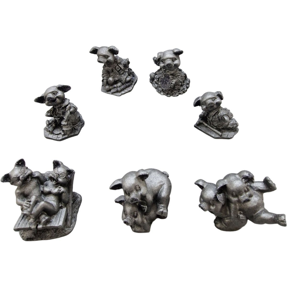 7er Set Schweinchen Deko Figuren aus Lavastein vom Ätna